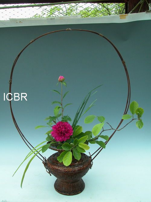 在现代插花作品中,竹子的应用更为巧妙,竹子的枝、叶、竿、老根、笋无不用到。或取一整株竹,衬以其他花材作大型花;或取老兜怪根,作盆景花中的“山峰”;或布于大型花艺中,都很适宜。另外,以竹帘作为衬景,使得插花作品效果更佳。总之,竹可以多种形式在现代插花中应用。