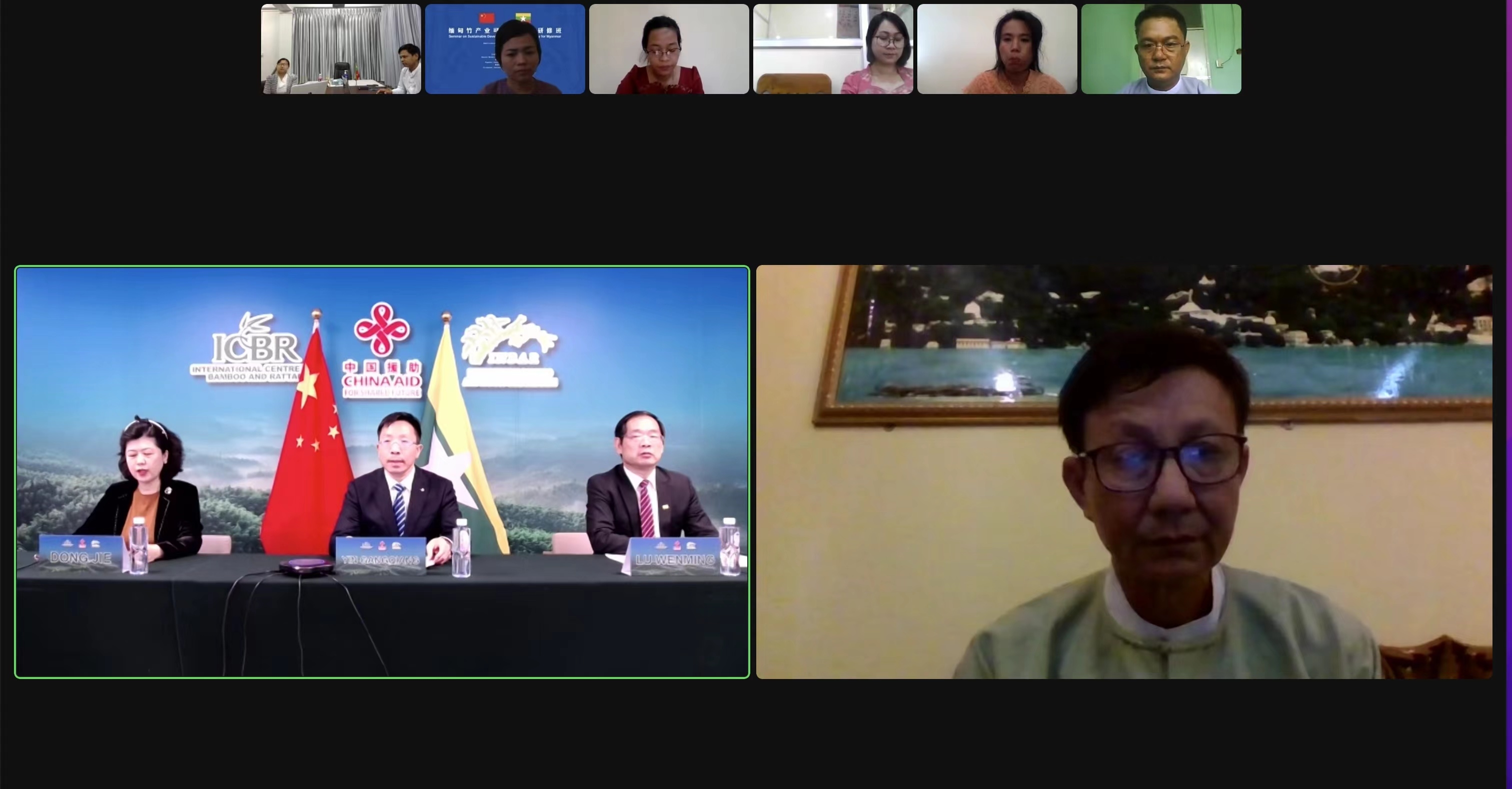 由国际竹藤中心承办、国际竹藤组织协办的商务部“缅甸竹产业可持续发展研修班”于2022年11月3—23日在线上成功举办。11月23日的研修班结业式上,国际竹藤中心党委书记、副主任尹刚强,国际竹藤组织副总干事陆文明出席并讲话。国际竹藤中心培训处副处长董杰主持结业式。