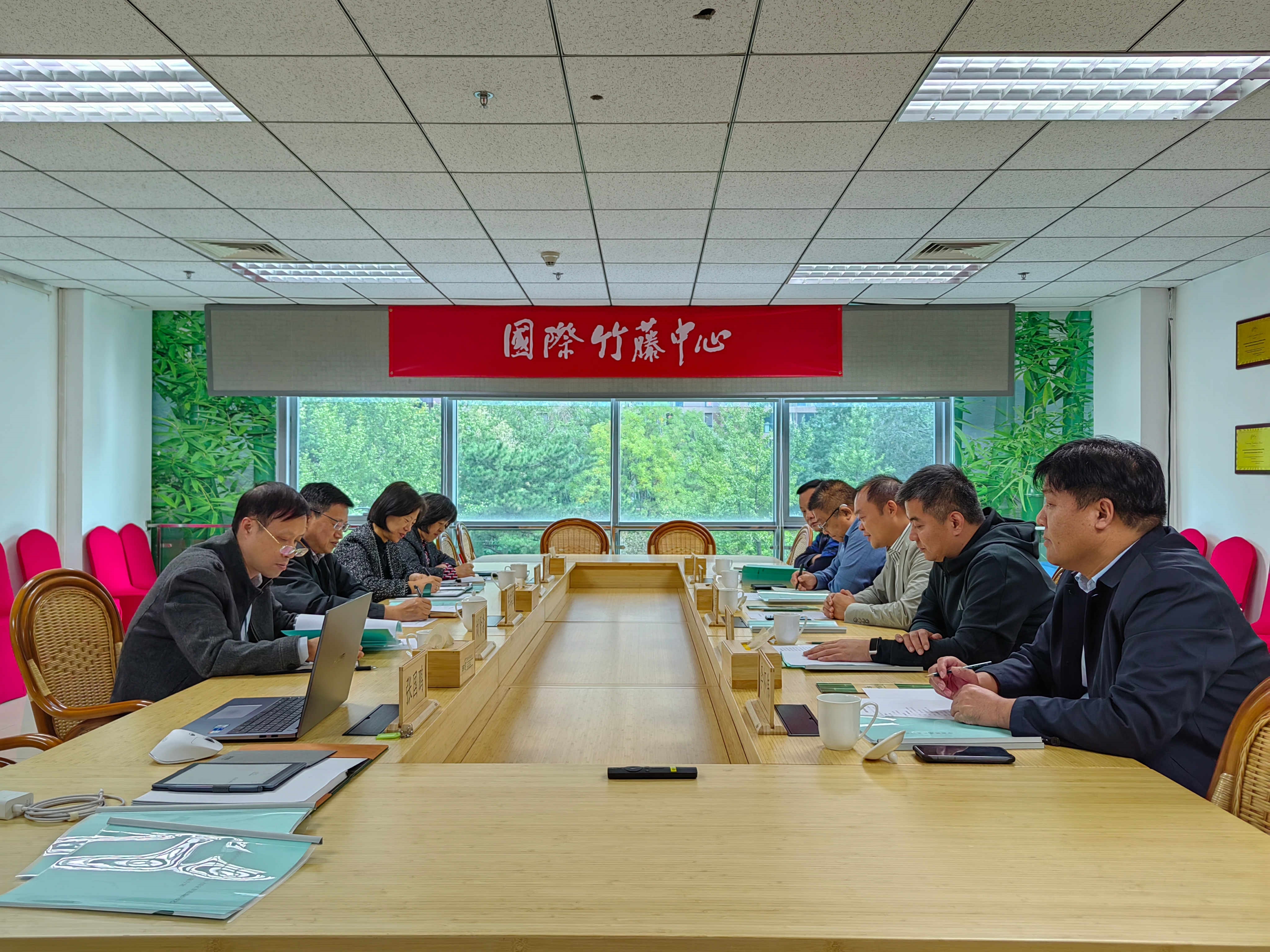 10月17日,安徽省阜阳市阜南县委常委张雷一行来访国际竹藤中心。中心副主任陈瑞国主持召开座谈交流会,材料所、产业处、基因所、综合办等相关部门人员参会。