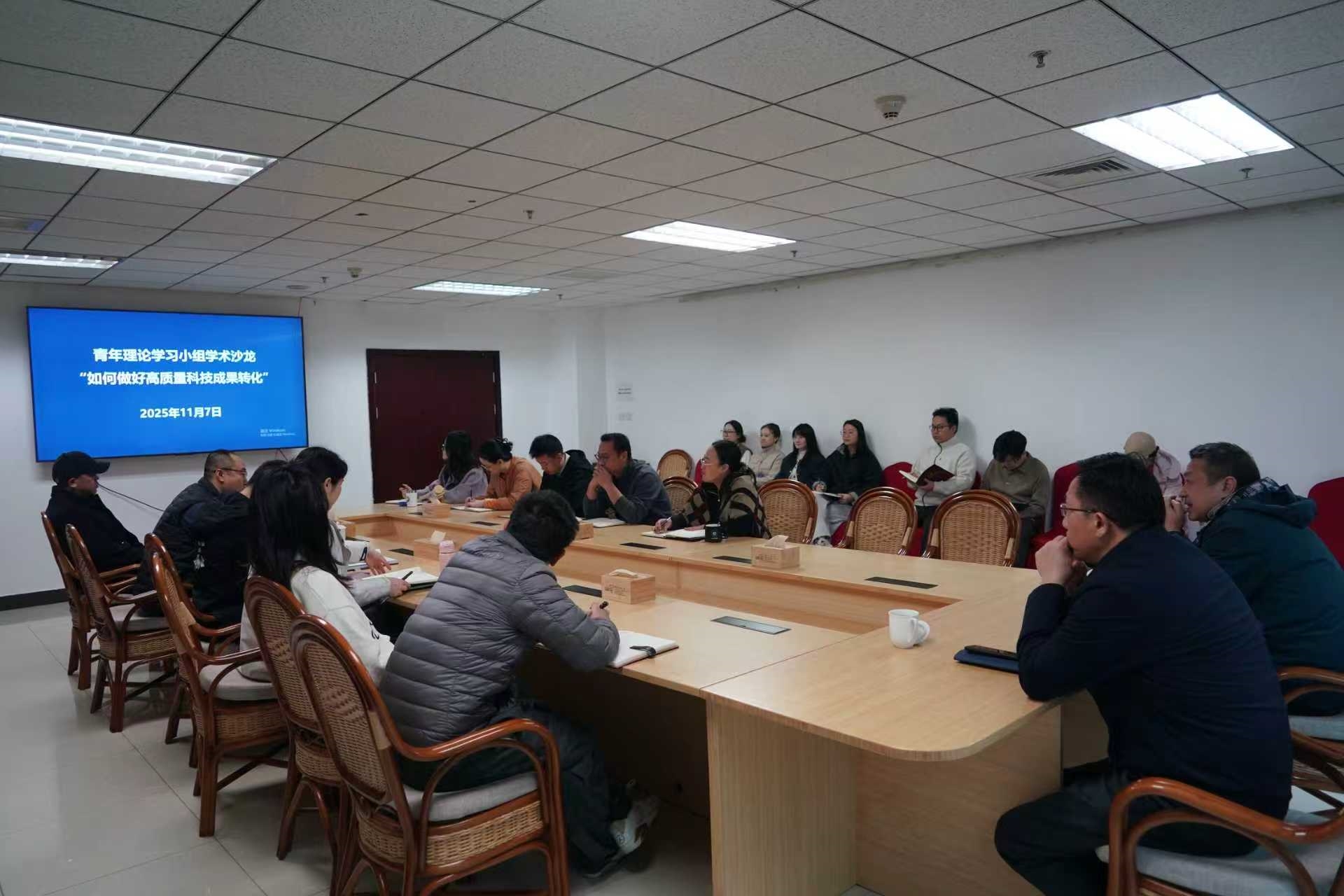 活动开始,传达了中心党委关于深入学习贯彻党的二十届四中全会精神的部署要求,青年理论学习小组负责人冯龙领学人民日报评论文章。随后,漆良华研究员剖析了科技成果转化的内涵、面临的问题与路径,并结合自身经验为青年人员提供了可借鉴的实践范本;马建锋研究员结合自身产学研合作经历,就如何做好科学研究以及如何与企业高效对接提出了建议;产业处张纪元详细解读了中心科技成果转化的最新政策与办理流程。