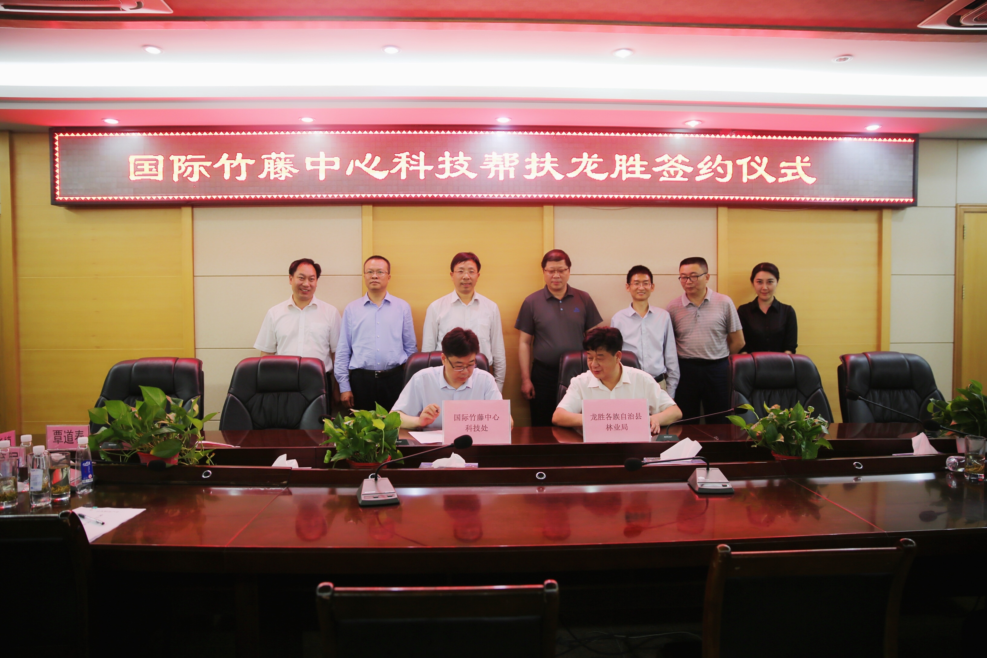 考察期间召开了科技帮扶座谈会,龙胜县委常委、副县长、宣传部长李一飞,龙胜县委常委、副县长敖孔华分别介绍了龙胜县林业、竹产业发展情况和脱贫攻坚工作进展情况。尹刚强介绍了国际竹藤中心基本情况以及竹藤中心开展扶贫工作的思路、任务和具体措施,他说,此次受江泽慧主任委托,代表竹藤中心全体干部职工到龙胜县开展科技扶贫工作,是贯彻落实习近平总书记扶贫工作重要指示精神,落实国家林业和草原局扶贫工作要求的具体行动,竹藤中心将在前一个时期认真沟通、研究的基础上,通过实地调研考察,进一步了解实情,针对龙胜县的实际情况和需求,结合自身实际,发挥自身优势,从科技项目实施、扶贫培训、农林产品采购等方面,切实把对口扶贫工作做好做实,做到项目落地、技术落地、培训落地、爱心落地。竹藤中心科技处处长覃道春、培训处处长王刚分别从竹产业发展及科技帮扶、开展扶贫培训等方面提出了相关意见建议。座谈会上,国际竹藤中心科技处与龙胜县林业局签订了科技帮扶协议。