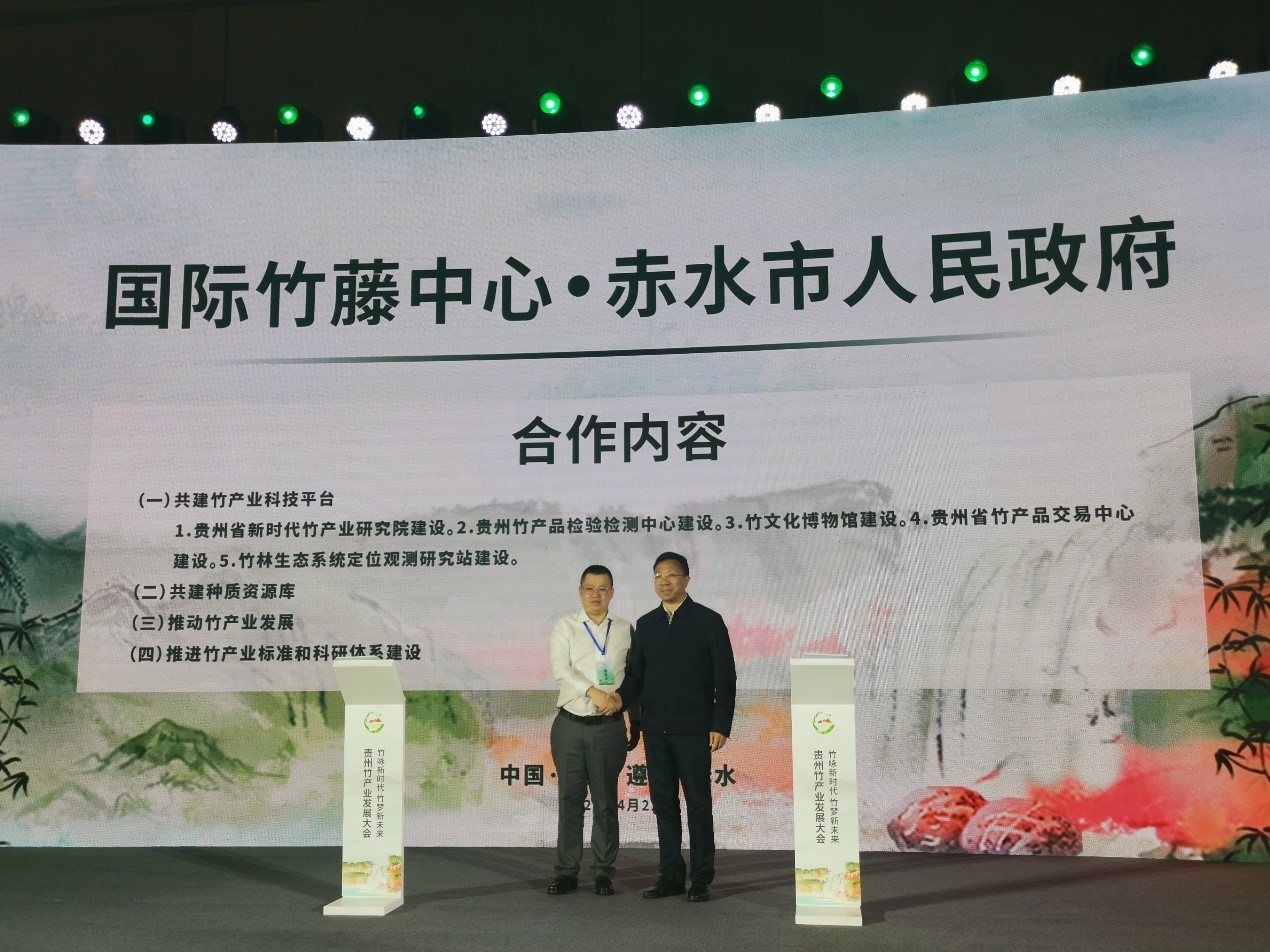 尹刚强书记代表中心与赤水市人民政府签订合作框架协议。他表示,竹产业集经济效益、生态效益和社会效益于一体,是践行绿水青山就是金山银山理念、实现一二三产融合发展的典范产业。中心将充分发挥人才和技术优势,在竹产业科技平台建设、人才培养、标准和科研体系建设等方面为赤水市和贵州省竹产业发展提供全产业链科技支撑。