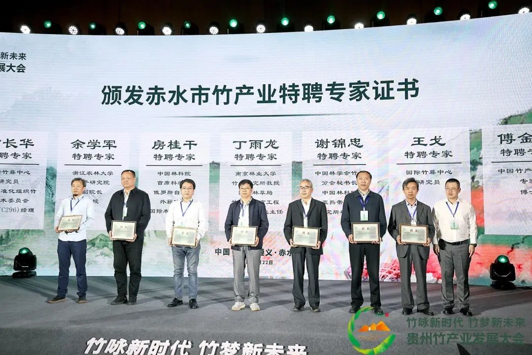 会上,范少辉研究员参加“竹与未来”主题对谈会,王戈研究员作竹产业科技成果推介,方长华研究员作《“以竹代塑”典型产品及标准》主旨报告。中心王戈研究员与方长华研究员被聘请为赤水市竹产业特聘专家。