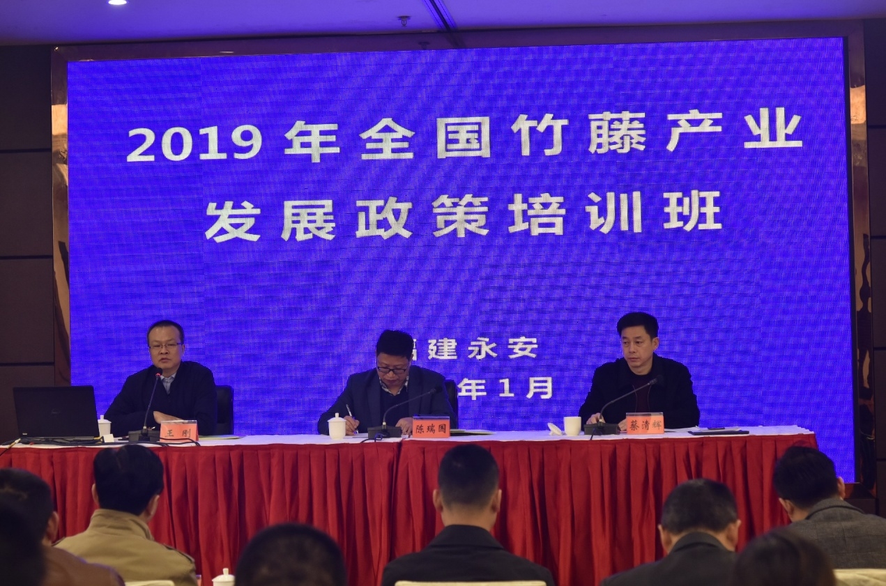 1月8-12日,国际竹藤中心在福建永安成功举办“2019年全国竹藤产业发展政策培训班”。来自浙江安吉,安徽广德,福建永安、建瓯,江西井冈山,河南博爱,湖北咸宁、赤壁,重庆忠县,四川长宁、青神、纳溪,贵州赤水,云南大关等10个省(市)14个县(市、区)的县政府分管领导、林业部门负责人、科研院所负责人、当地竹藤重点骨干企业负责人等共计72人参加了培训。中心副主任陈瑞国、永安市副市长蔡清辉等出席开班仪式。