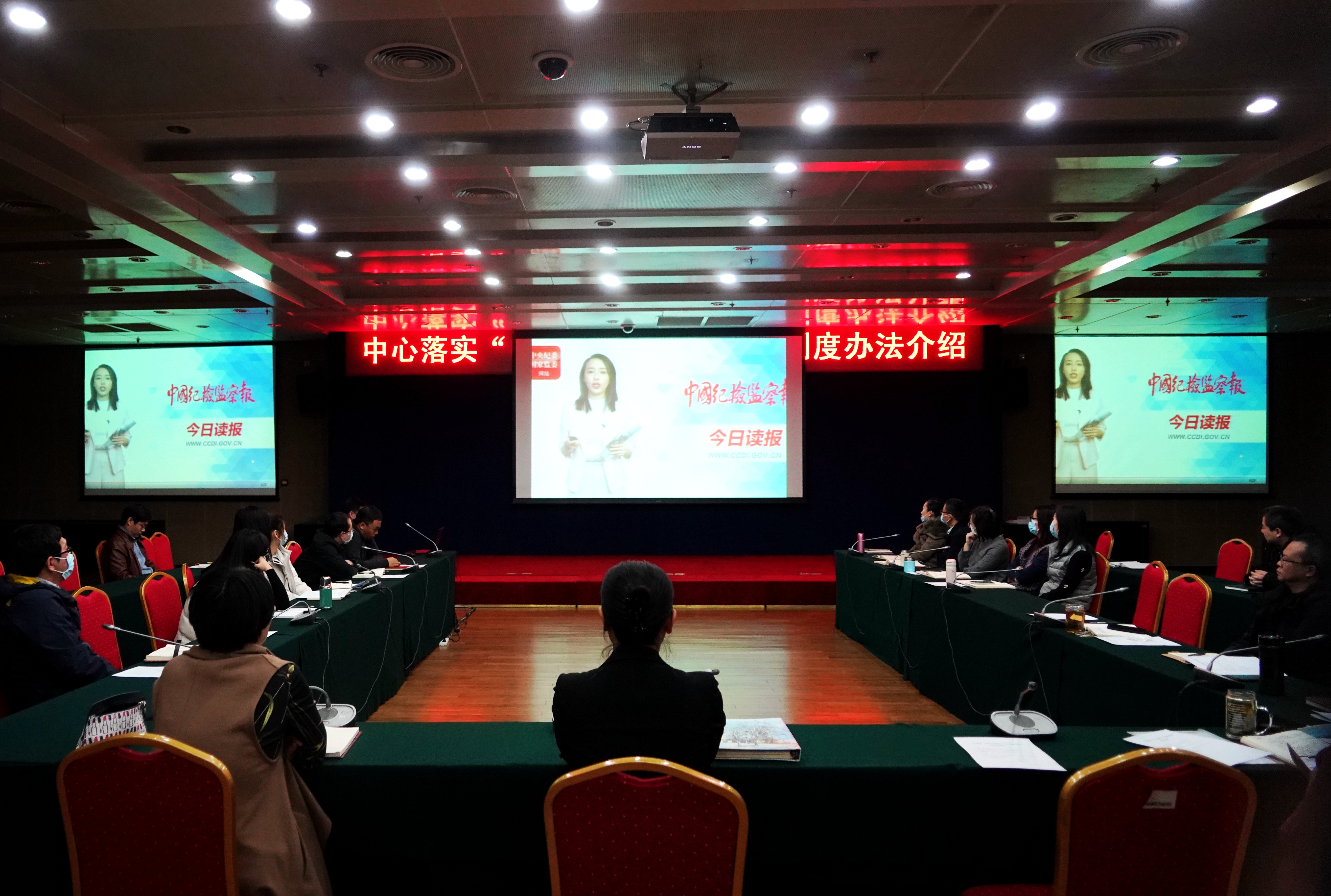 全体参会人员观看廉政教育课件