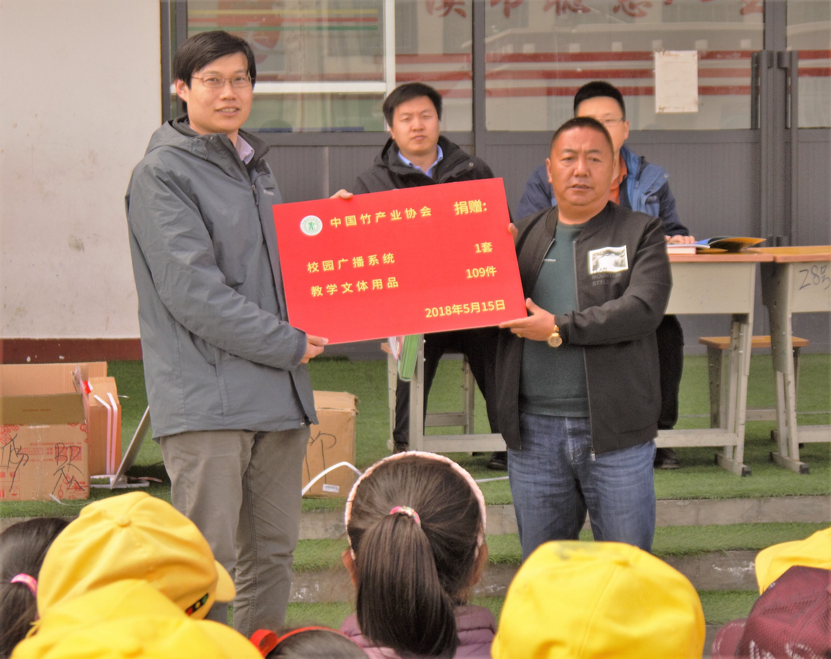 夏恩龙代表中国竹产业协会向中乡第二中心小学捐赠