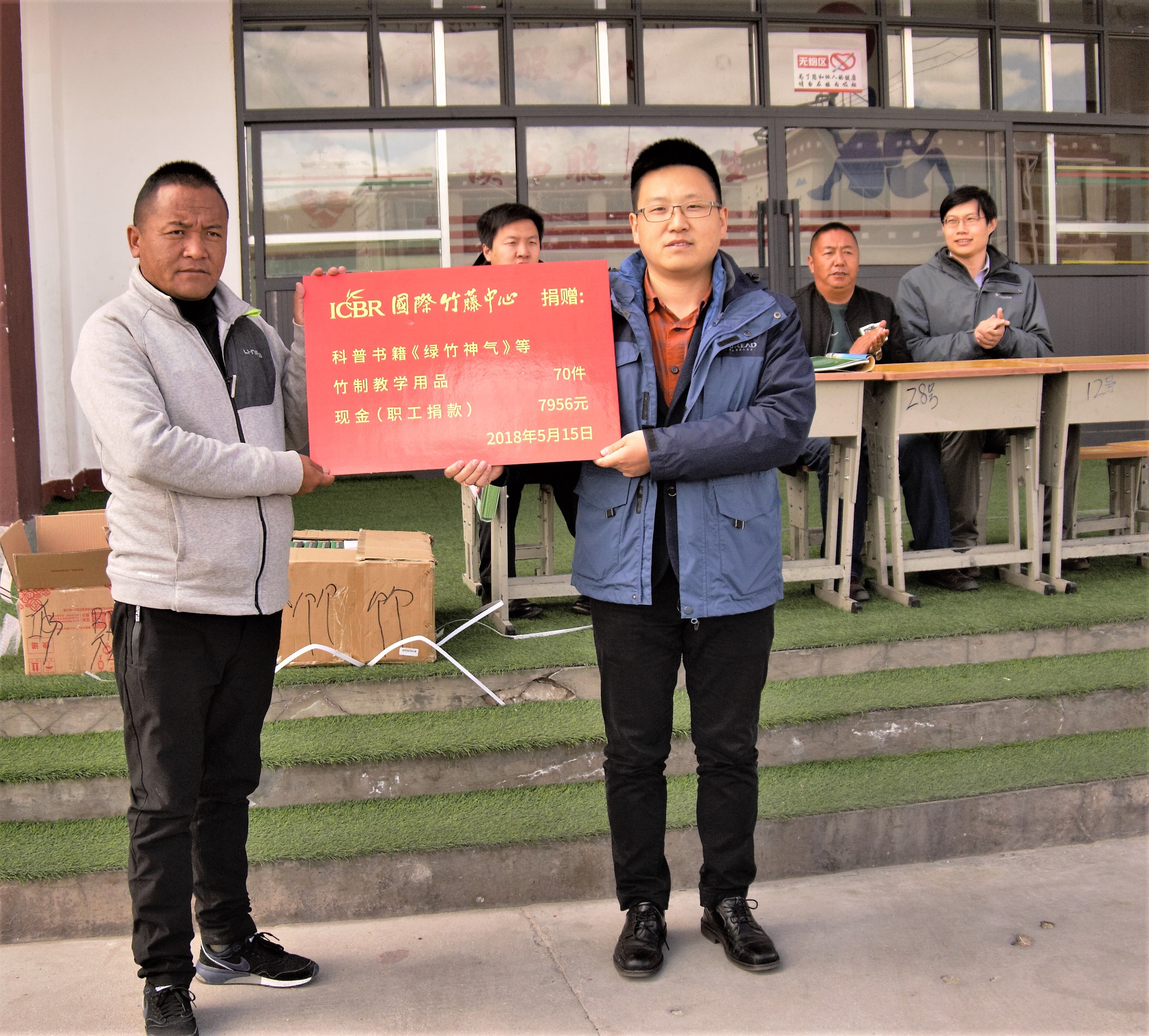 2018年5月15日,中国竹产业协会与国际竹藤中心在西藏自治区当雄县宁中乡第二中心小学联合开展“情暖西藏”捐资助学活动。中国竹产业协会副秘书长、竹藤中心绿色经济研究所副所长刘志佳主持活动,中国竹产业协会副秘书长、竹藤中心综合办副处长夏恩龙,竹藤中心工会委员、党办副处长李兴军,当雄县宁中乡第二中心小学校长巴桑、书记次旦及全校师生300余人出席捐赠仪式。