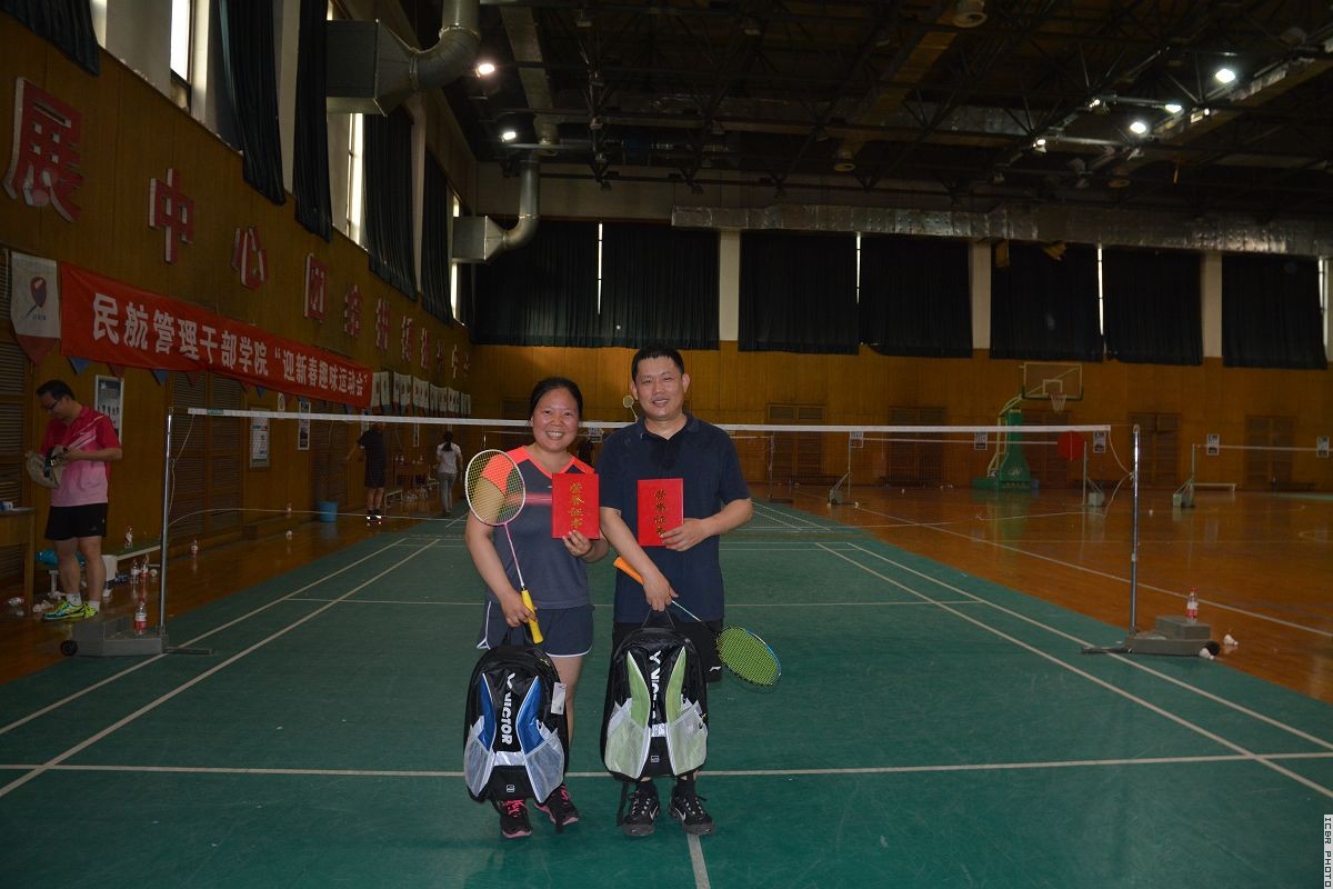 会后,中心团委举办了羽毛球混双比赛。余雁和任丹师生组合夺得冠军。