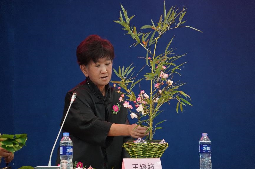 插花花艺大师王绥枝老师现场进行主题花艺创作