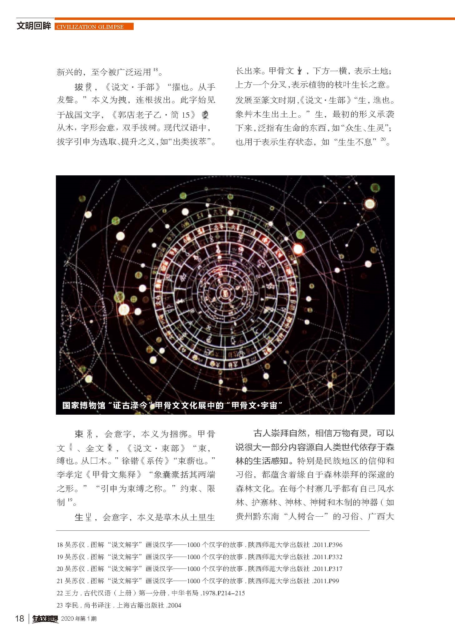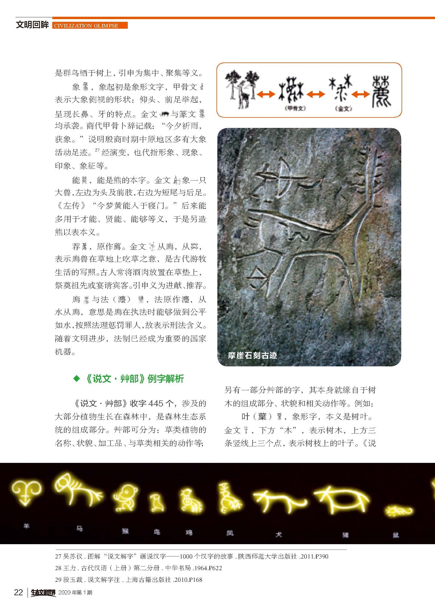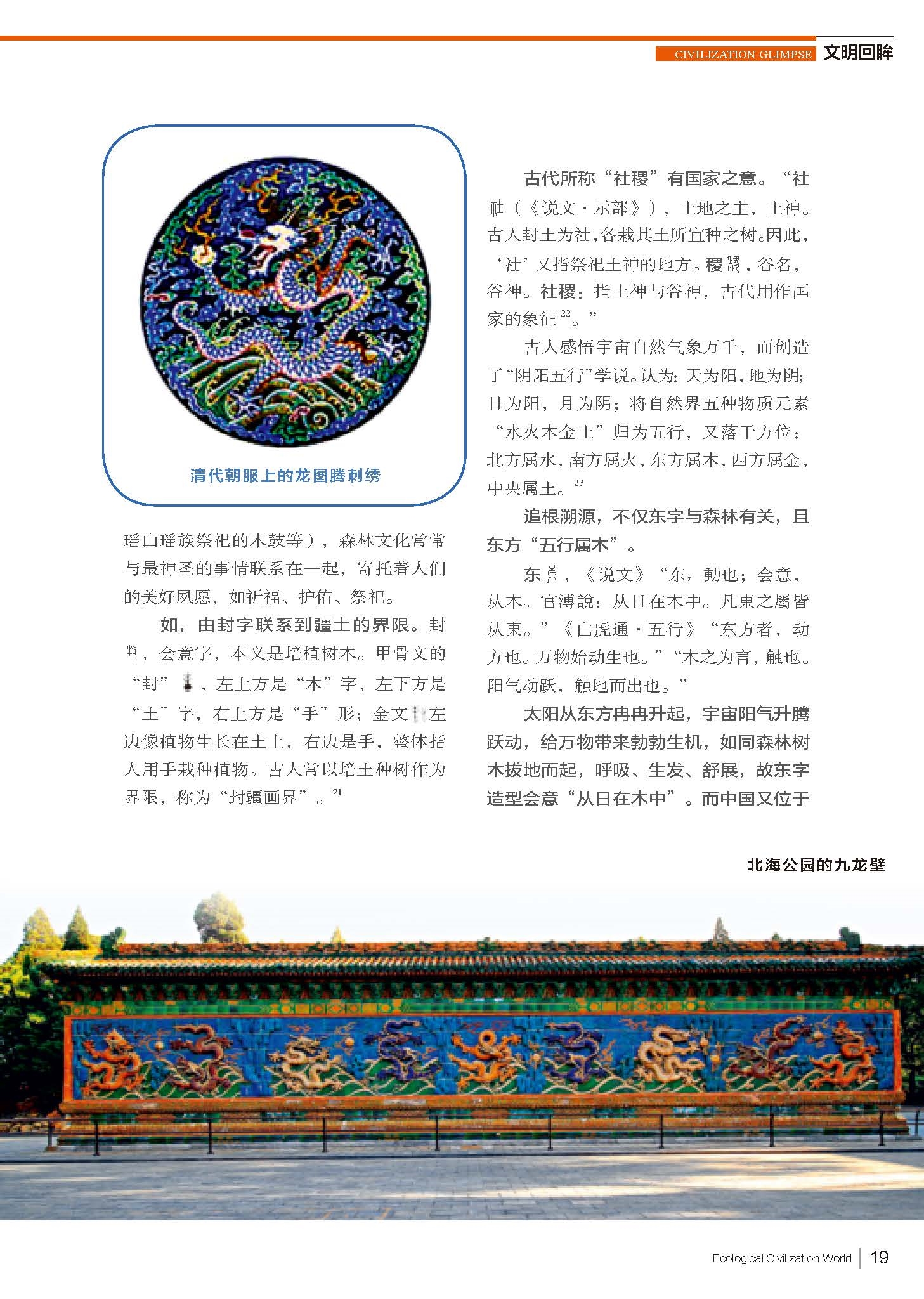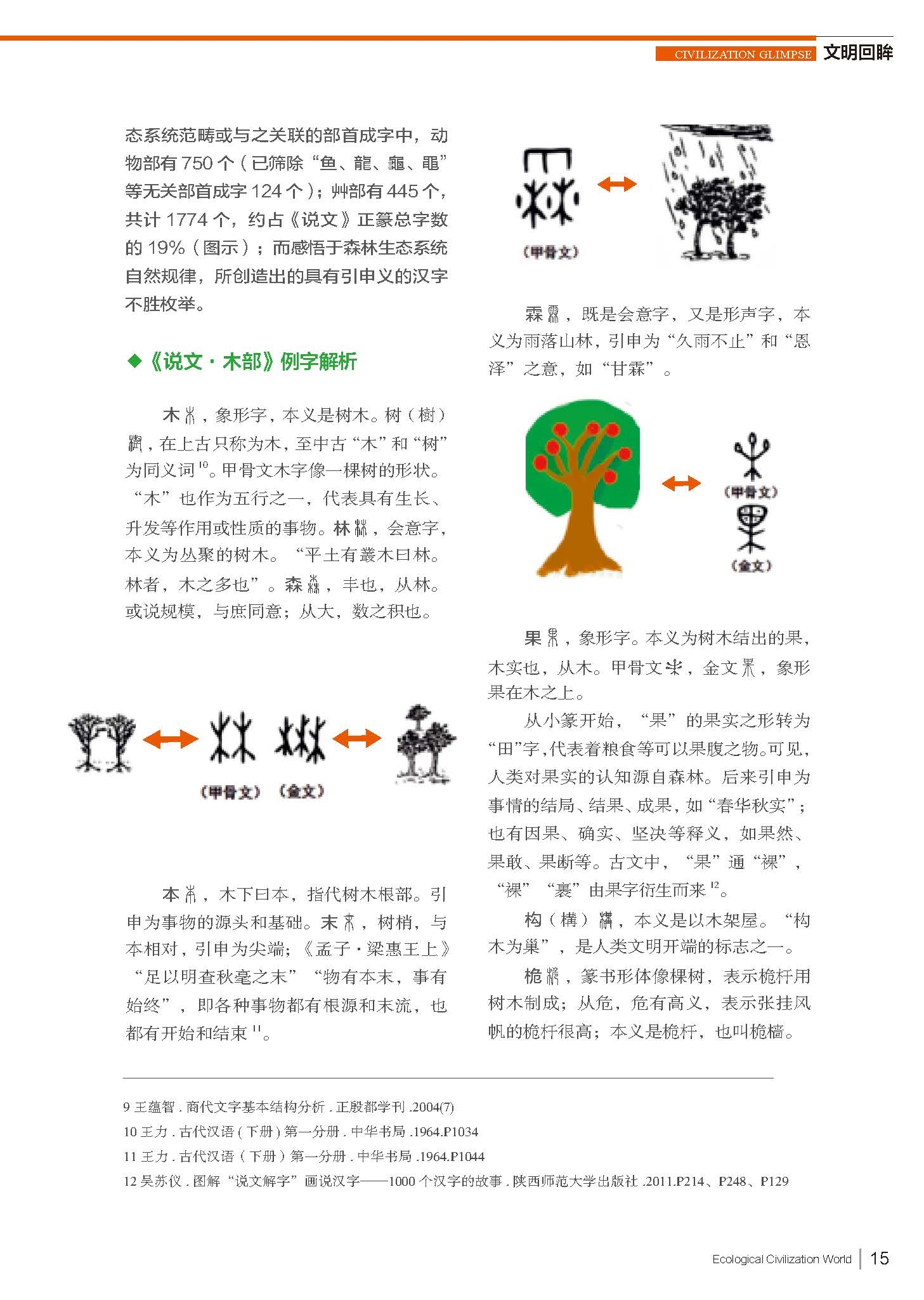 学习贯彻党的十九届四中全会精神: 推进中华优秀传统文化传承发展工程, 加强中国历史和中华文化教, 坚持不懈开展马克思主义祖国观、民族观、文化观、历史观宣传教育, 打牢中华民族共同体思想基础, 构筑中国精神、中国价值、中国力量。森林文化植根中国大地,是创造中华文化的重要基础。解析森林对汉字起源的影响, 关乎森林文化遗产保护传承和创新发展; 溯源森林对人类文明发展的文化价值, 揭示中华民族屹立于世界民族之林,和谐、可持续发展的文化品格和思想精髓, 至关人类的古今和未来……
