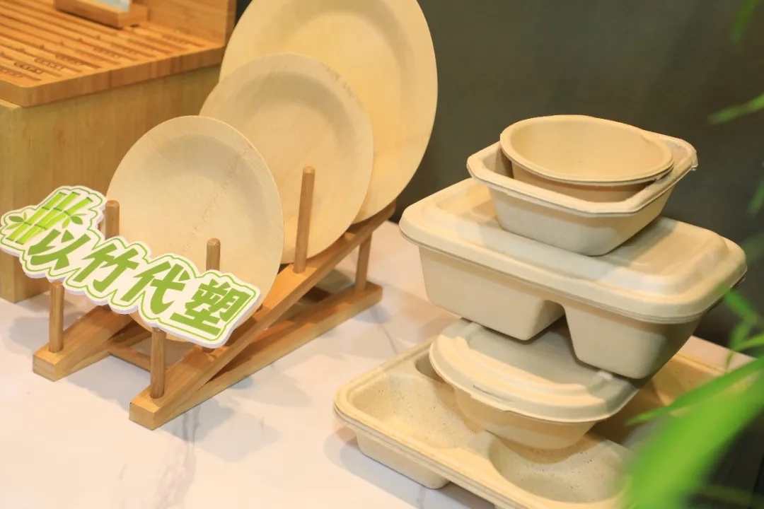 其次是推广以竹代塑。商务部积极搭建对话交流平台,引导商贸流通企业与竹制品企业产销对接、供需对接,积极培育竹产品绿色消费市场,会同相关部门举办“以竹代塑促进绿色消费”论坛、“家电以旧换新暨绿色流通主题活动”等,推动印发《“以竹代塑”主要产品名录》;依托国际(安吉)“以竹代塑”论坛组织开展竹产品推广对接活动,推广绿色替代产品。竹制家具、竹制餐具、竹制牙刷、竹筐竹篓等日用品及工艺品深受广大消费者的喜爱,有些竹制品进入市内免税店后,也受到外国游客的欢迎。