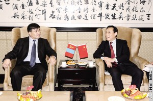 中国绿色时报9月26日报道(记者 田新程) 9月24日,国家林业局副局长刘东生会见了蒙古环境与绿色发展部国务秘书(副部级)巴博德·贾姆斯朗一行。双方认为今年以来两国林业高层多次会晤,显示了中蒙在林业领域十分紧密与友好的合作关系,一致同意在戈壁熊保护繁育、森林病虫害生物防治、治沙造林等方面进一步深化务实合作。双方确认将对2008年6月签署的两国林业合作谅解备忘录进行修订,并计划于2015年签署新的林业合作协议。