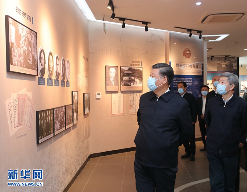 4月20日至23日,中共中央总书记、国家主席、中央军委主席习近平在陕西考察。这是4月22日,习近平在西安交通大学交大西迁博物馆参观。 新华社记者 鞠鹏 摄