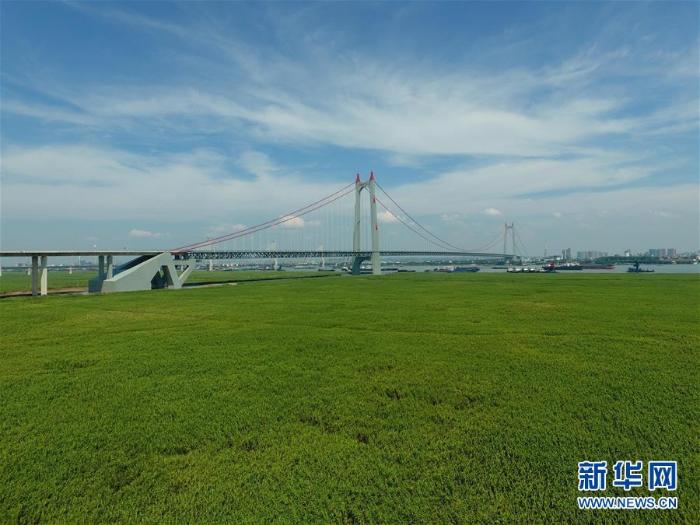 立秋已过,长江湖南岳阳段的华龙湿地,江碧草青,气象开阔,吸引了许多游客来此观光。