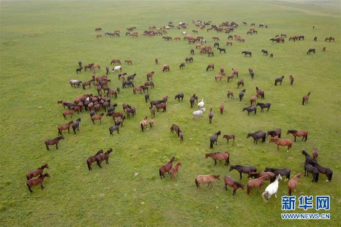 这是在中农发山丹马场有限责任公司一场拍摄的马群(8月21日无人机拍摄)。新华社记者 范培珅 摄