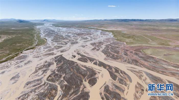 这是位于青海省格尔木市唐古拉山镇的长江正源沱沱河河道(8月9日无人机拍摄)。新华社记者 吴刚 摄
