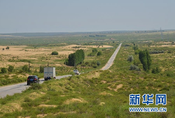 在内蒙古鄂尔多斯市杭锦旗,汽车行驶在锡乌公路上(7月26日摄) 新华社记者 邹予 摄