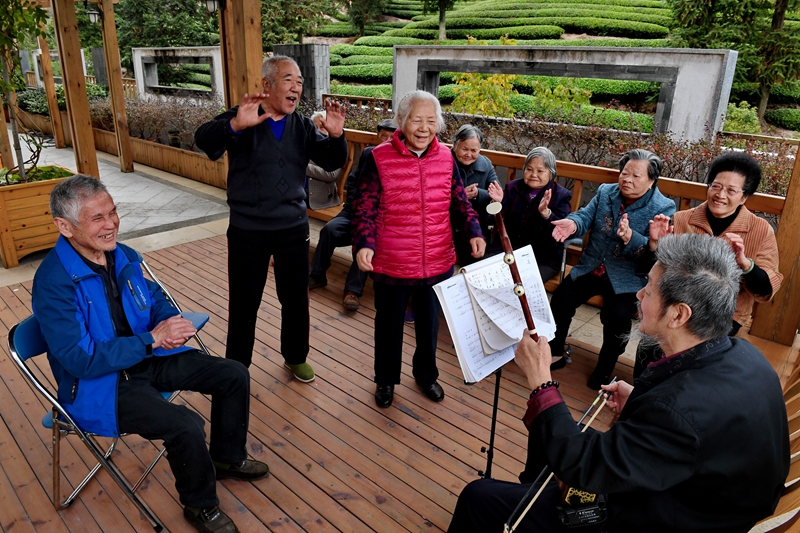 老人在福建省武夷山市社会福利中心唱歌(2018年11月1日摄)。新华社记者 张国俊 摄