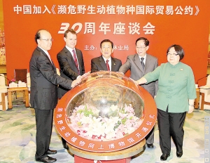 4月8日,濒危野生动植物网上博物馆开通仪式在中国加入《濒危野生动植物种国际贸易公约》30周年座谈会上举行。国家林业局局长贾治邦、农业部常务副部长危朝安、《公约》秘书长约翰·斯甘伦、海关总署监管司司长郝崇福、外交部条法司参赞刘燕端共同开通了网上博物馆。