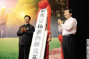 国家林业局副局长张永利和云南省委常委、省委组织部部长辛桂梓为“云南省杨善洲绿化基金会”揭牌