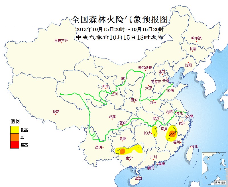 <html style=""> <head style=""></head> <body style=""> <span style="">据中央气象台<span lang="EN-US" style="">10</span>月<span lang="EN-US" style="">15</span>日下午预报,今天晚上到明天,湖南东北部、江西东北部、福建西北部、贵州西南部、广西北部等地的部分地区森林火险气象等级为中度危险(三级),其中,江西东北部、福建西北部、广西西北部的局部地区森林火险气象等级为高度危险(四级)。</span> <div style="text-align: center"> <span style=""><img width="640" height="525" alt="" src="$/history/article_uploadfiles/201310/2013101522384507.gif" class=" center" style="" /></span> </div> </body> </html>