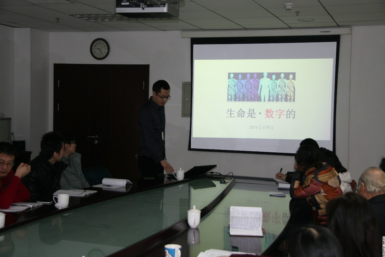 基因中心赵韩生助理研究员做了以《生命是数字的》为题的学术报告。报告以生物学发展的时间为主线,重点突出了组学和生物信息学在当前生物学研究中的重要作用。阐述了生命是可以用数学、数字解读的。报告通俗易懂,深入浅出。与会人员进行了交流,现场气氛活跃。