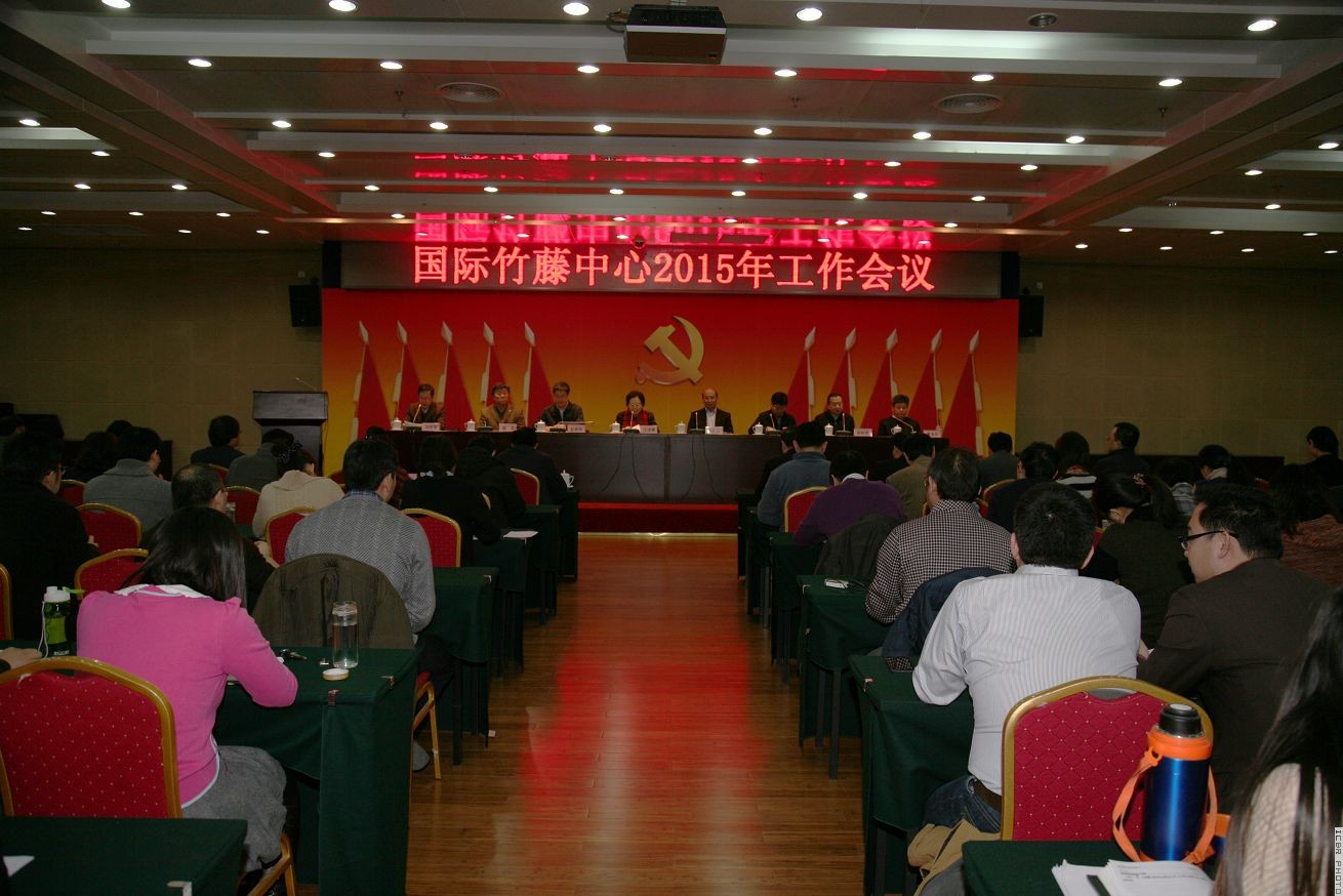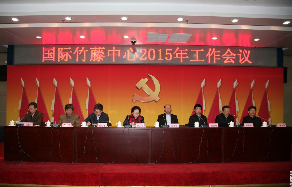 2015年1月21日,国际竹藤中心召开2015年工作会议。全国政协人口资源环境委员会副主任、国际竹藤中心主任江泽慧,国家林业局党组成员、副局长孙扎根出席会议并讲话。局党组成员、科技司司长彭有冬,局人事司司长谭光明,局计财司副司长杨冬,局科技发展中心副主任李明琪,竹藤中心常务副主任费本华、党委书记刘世荣,国际竹藤组织副总干事李智勇,竹藤中心副主任李凤波、党委副书记李晓华及竹藤中心全体干部职工和国际竹藤组织代表参加会议。刘世荣书记主持会议。