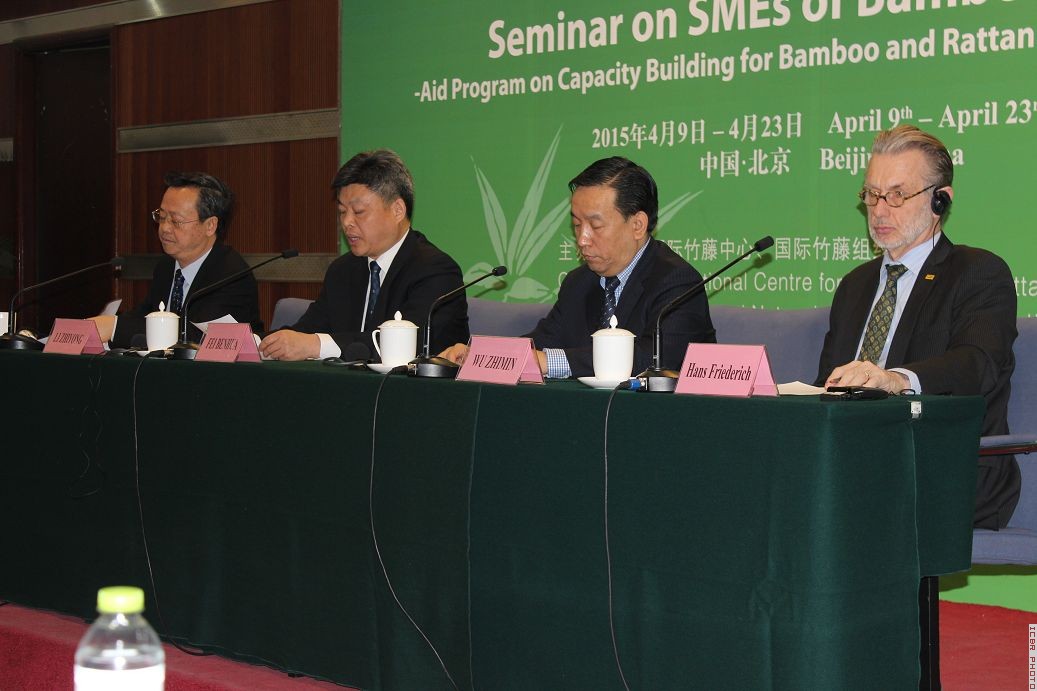 2015年4月8日,国际竹藤组织竹子中小企业发展研修班在北京开班。国家林业局对外合作项目中心常务副主任吴志民、国际竹藤中心常务副主任费本华、国际竹藤组织总干事费翰思、副总干事李智勇出席了开班式。此次研修班共有18名学员,分别来自马来西亚、阿根廷、牙买加等亚洲、拉丁美洲和加勒比地区的13个国家。
