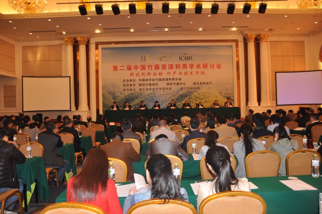为贯彻落实党的“十八大”提出的实施创新驱动发展战略,扎实推动我国竹资源可持续利用和竹产业技术升级,共同交流竹材加工利用领域重要的学术进展,深入探讨竹产业绿色发展中所面临的机遇与挑战,2015年4月12-13日,第二届中国竹藤资源利用学术研讨会在湖北省咸宁市召开,主题为“科技创新驱动竹产业技术升级”。国家林业局党组成员、科技司司长彭有冬,中国林学会副理事长、秘书长陈幸良,湖北省林业厅副厅长董祚华,中共咸宁市委副书记陈树林出席12日上午的开幕式并讲话,国际竹藤中心常务副主任费本华主持开幕式。中国工程院院士张齐生,国家林业局科技司副司长、科技发展中心主任胡章翠,国际竹藤组织副总干事李智勇,国家林业局竹子开发研究中心主任于辉,中国林学会竹藤资源利用分会副主任委员、常务委员以及全国部分相关科研院所、大学、行政事业单位、竹加工企业代表等200余人参加会议。会议由中国林学会竹藤资源利用分会主办,国际竹藤组织、国际竹藤中心、湖北省林业厅协办,湖北省林业科学研究院、咸宁市林业局承办。