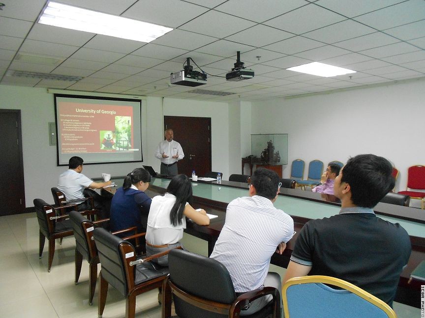 2015年9月14日,美国佐治亚大学W. Dale Greene教授和西弗吉尼亚大学王景欣教授应引智项目(编号:20150327003)的邀请到竹藤中心进行学术交流,Greene教授作了题为“A realistic view of the potential for biomass energy from private forests in the United States”的学术报告。报告会由竹藤中心国际处副处长余雁研究员主持,该引智项目组成员、相关科研人员及研究生参加。