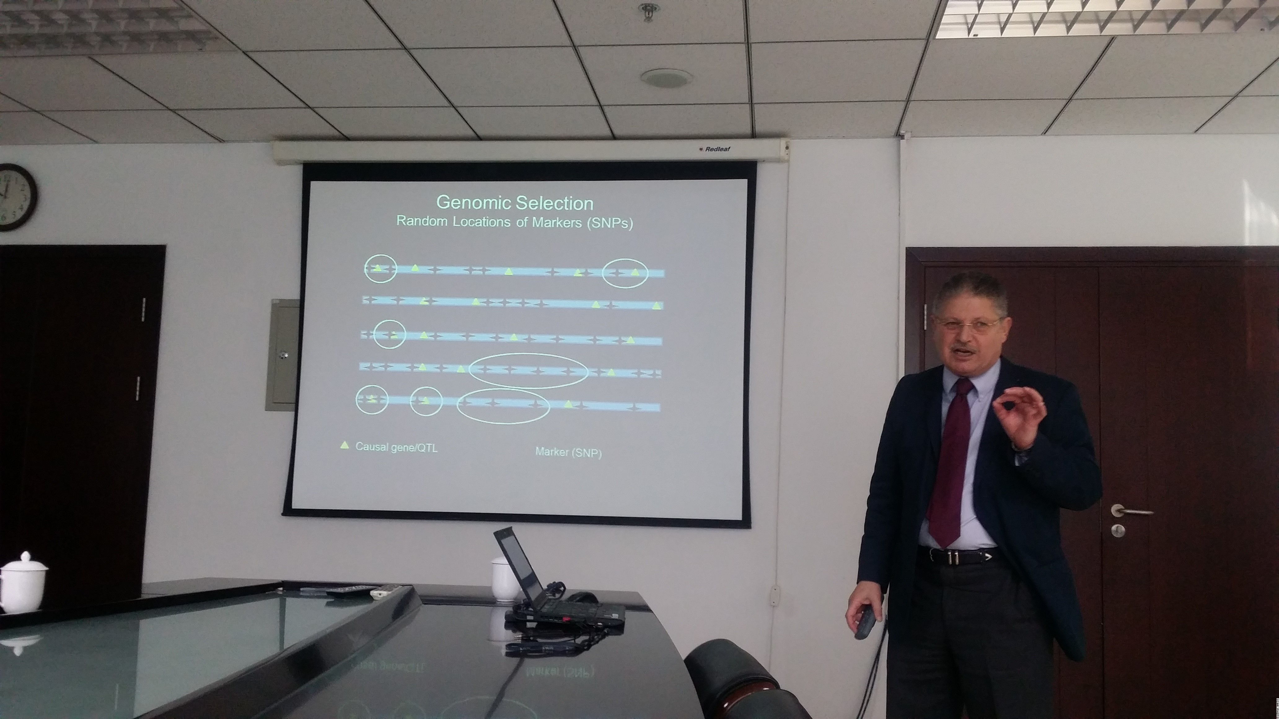 El-Kassaby教授作了题为“Forest Tree Improvement: The Shift from Quantitative Genetics to Quantitative Genomics ”的学术报告,详细介绍了从传统的数量遗传学到现代数量基因组学在林木育种中的应用,并以林木基因组选择中单核苷酸多态性(SNP)的应用为例,阐述了如何将数量基因组学应用于林木遗传改良领域,并介绍了云杉、新西兰辐射松的数量基因组学的应用案例。基因所牟少华副研究员等介绍了竹子单核苷酸多态性(SNP)及竹子基因组学研究情况。El-Kassaby教授与参会人员探讨了数量基因组学应用到竹子遗传育种的一些思路和想法。