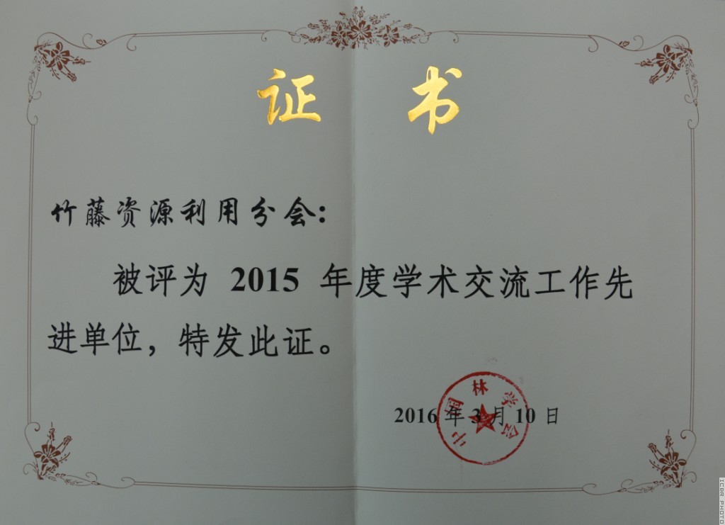 2016年3月15日,在四川成都召开的全国林学会秘书长会议上,表彰了2015年度学术交流、科学普及、决策咨询、组织建设等先进单位。中国林学会竹藤资源利用分会荣获“学术交流先进单位”称号。
