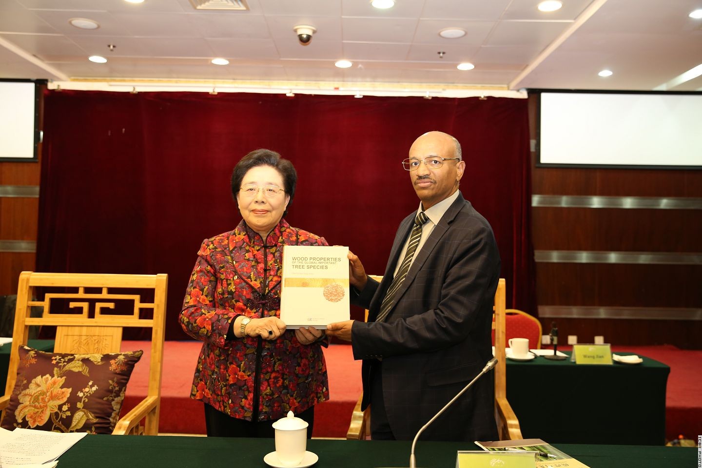 江泽慧主任赠送希费劳•德科里马里姆部长《世界主要树种木材科学特性》一书英文版