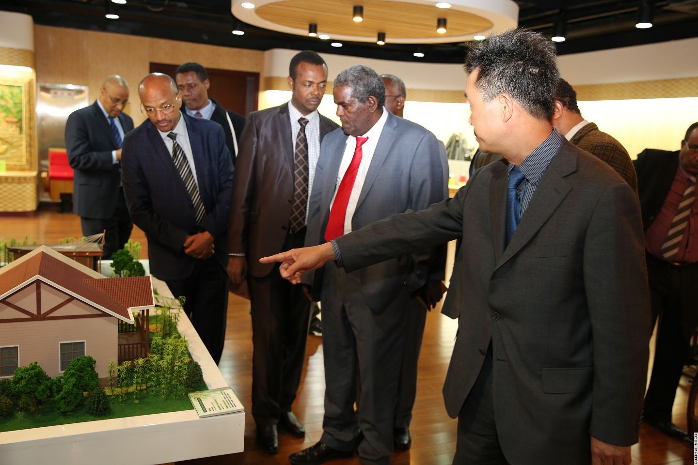 江泽慧主任对希费劳部长阁下率团访问国际竹藤组织表示热烈欢迎,对埃塞政府和希费劳部长长期积极支持INBAR表示感谢,并简要回顾了国际竹藤组织、国际竹藤中心和埃塞俄比亚在竹藤领域的合作概况,介绍了中埃竹藤培训和商品共同基金竹预制房项目的进展情况,重点就“中非竹子中心”、埃塞参与国际标准化组织竹藤标准技术委员会(ISO/TC296)和2017年世界竹藤大会等事宜进行了深入的交流。江泽慧主任表示,经过十几年的推动和发展,埃塞的竹产业取得了显著进展,已成为非洲地区的典范。