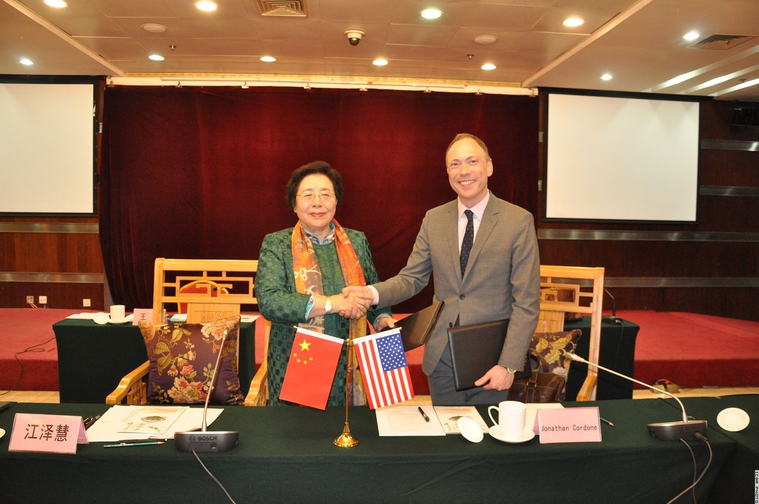 江泽慧主任与乔纳森·柯登帮办签署会谈纪要