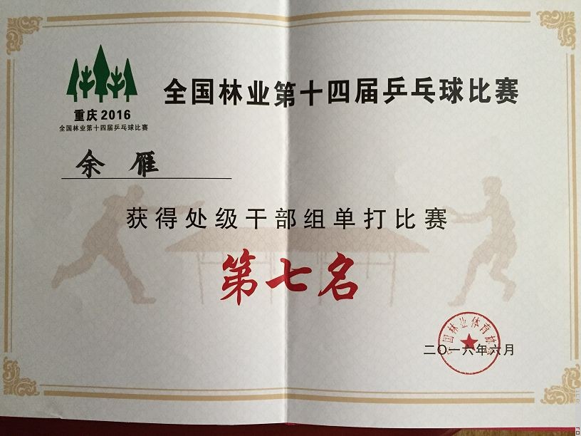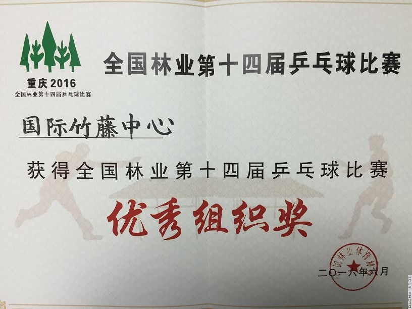 2016年6月27-29日,全国林业第十四届乒乓球比赛在重庆市举行,来自全国林业系统的23支代表队180名运动员分别参加了厅处级组、男子普通组、女子普通组团体比赛及厅局级、处级、处级以下单打比赛。国际竹藤中心此次派出了由10人组成的代表队,参加了团体和单打等7个组别的比赛。经过3天的激烈角逐,中心代表队获得厅级组单打第6名、处级组单打第7名和优秀组织奖的较好成绩。