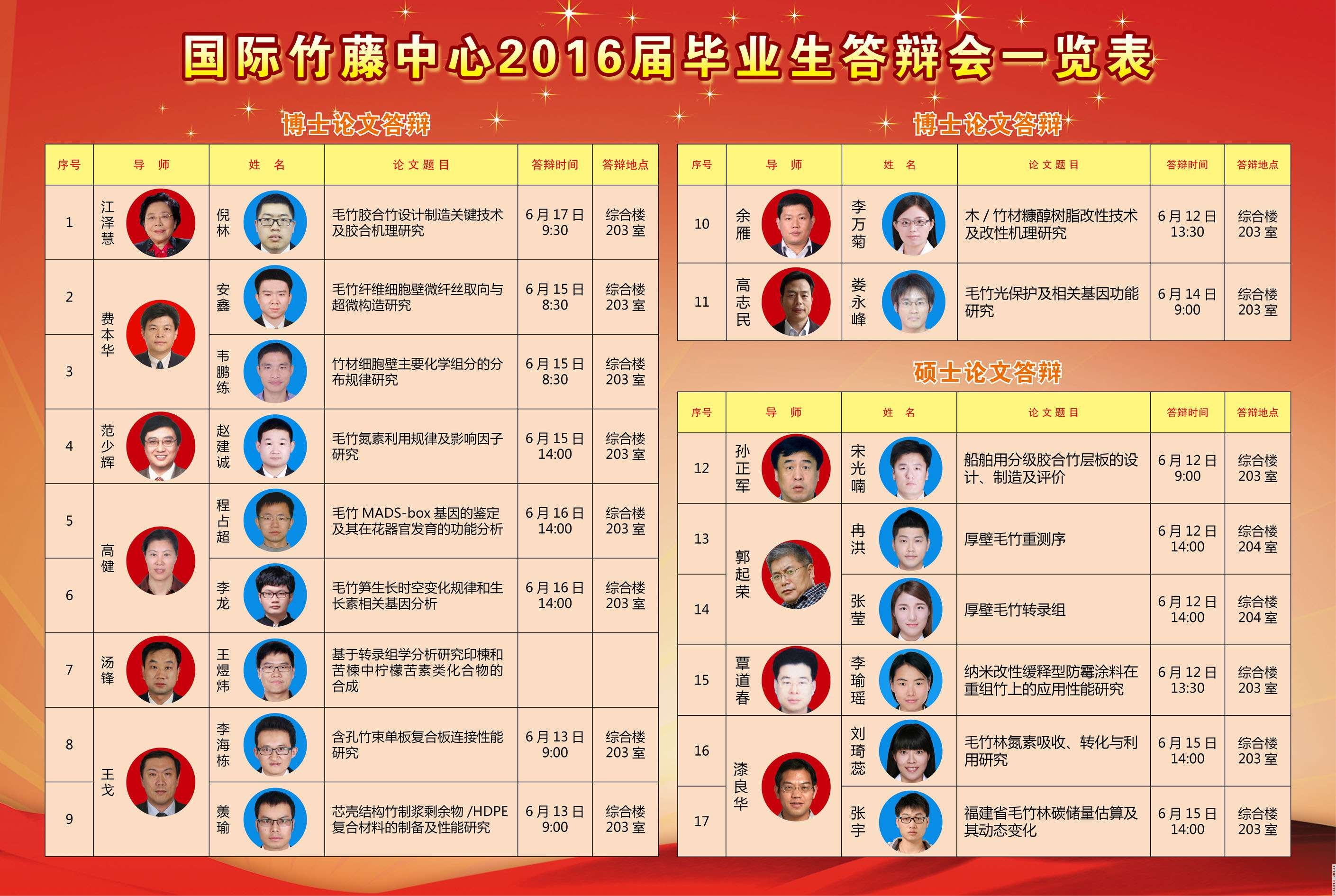 | 国际竹藤中心2016届研究生学位论文答辩会一览表 |