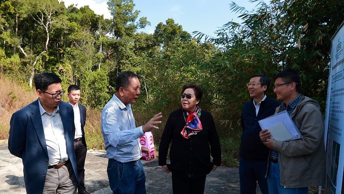 2018年1月14日,全国政协人口资源环境委员会副主任、国际竹藤中心主任江泽慧教授一行对国际竹藤中心三亚基地甘什岭野外种质资源保存区建设工作进行调研指导。国际竹藤中心党委书记刘世荣、副主任陈瑞国、三亚市林业局局长陈斌、甘什岭自然保护区管理站站长梁昌强和中心综合办、园林花卉与景观研究所、热带森林植物研究所的同志参加调研。