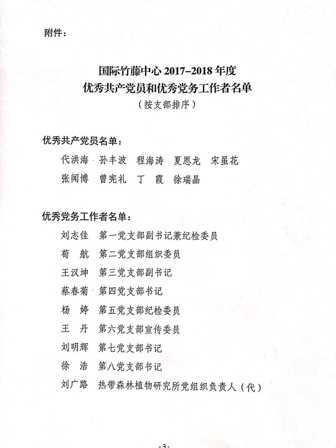 “国际竹藤中心2017-2018年度优秀共产党员”获得者