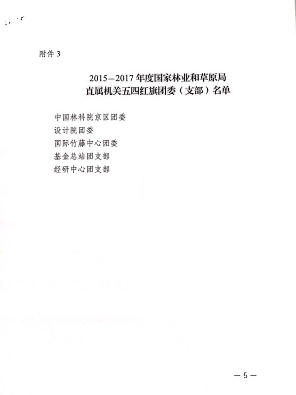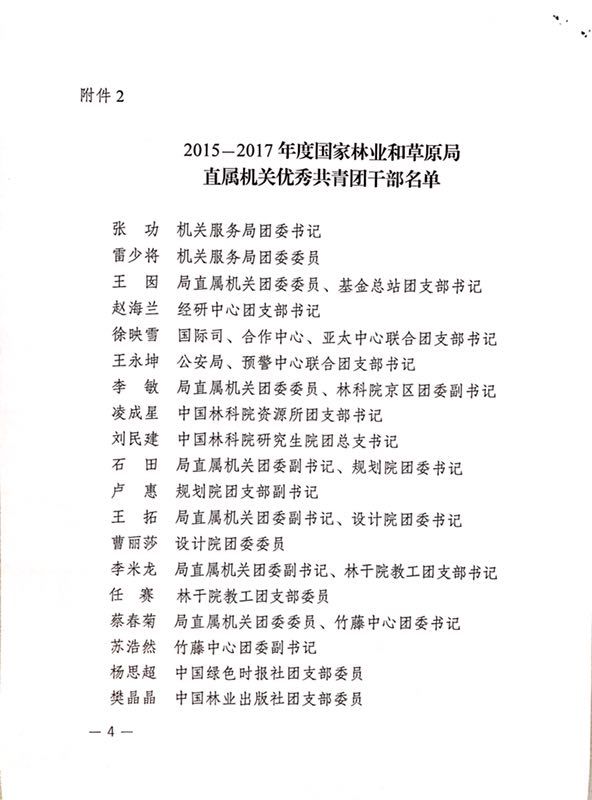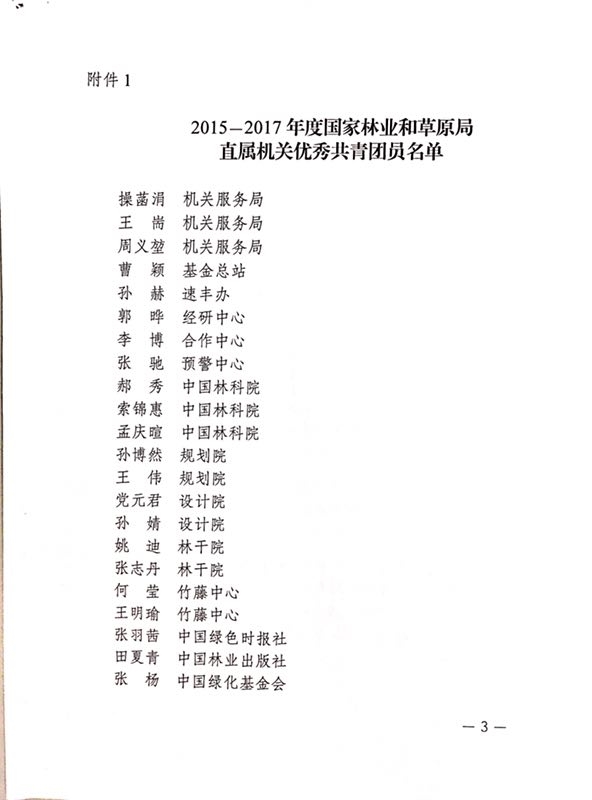 “国家林业和草原局2015-2017年度直属机关优秀共青团员、优秀共青团干部和五四红旗团委”获得单位和个人