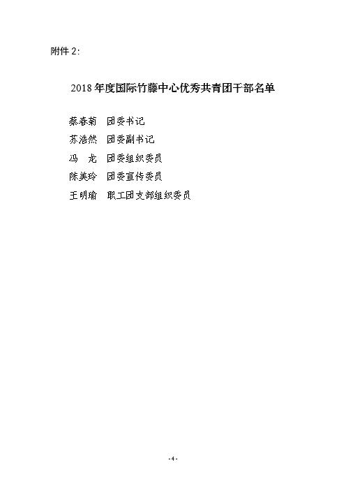 “国际竹藤中心2018年度优秀共青团干部”获得者