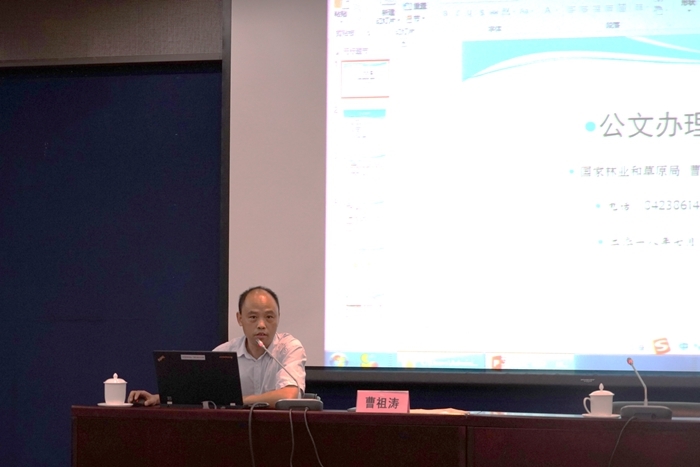 曹祖涛处长在讲座中结合公文文件处理的方式方法,系统阐述了公文要素格式、办文流程和发文规则等重点内容,详细讲解了公文种类、写作要领及相关的规范依据,全面分析了函、通知、请示、报告等常用公文的写作技巧,并引用具体事例深入剖析了公文写作中的典型问题。