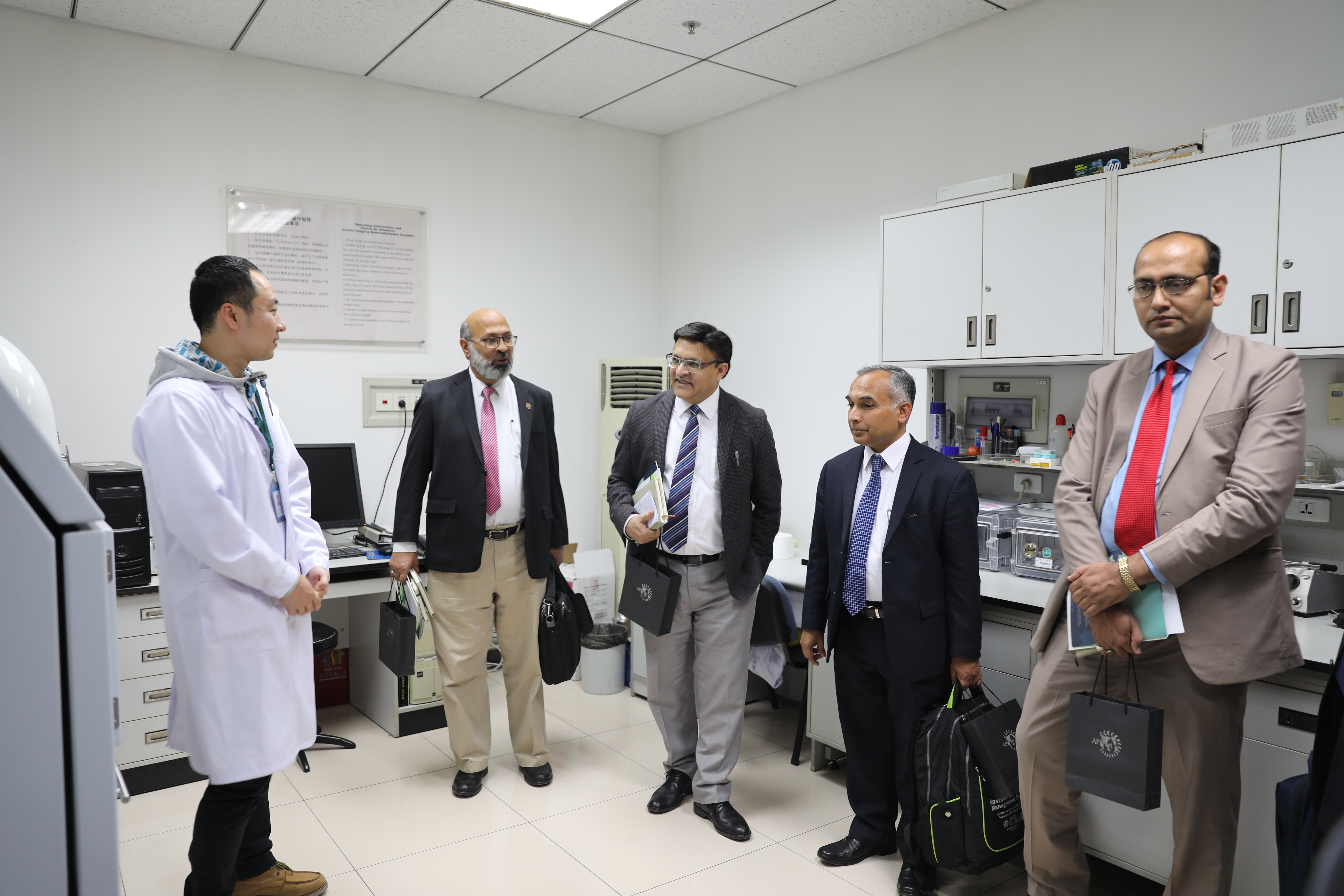 会谈前,巴基斯坦代表团一行在国际司王春峰副司长的陪同下参观了中心竹藤展厅和重点实验室。