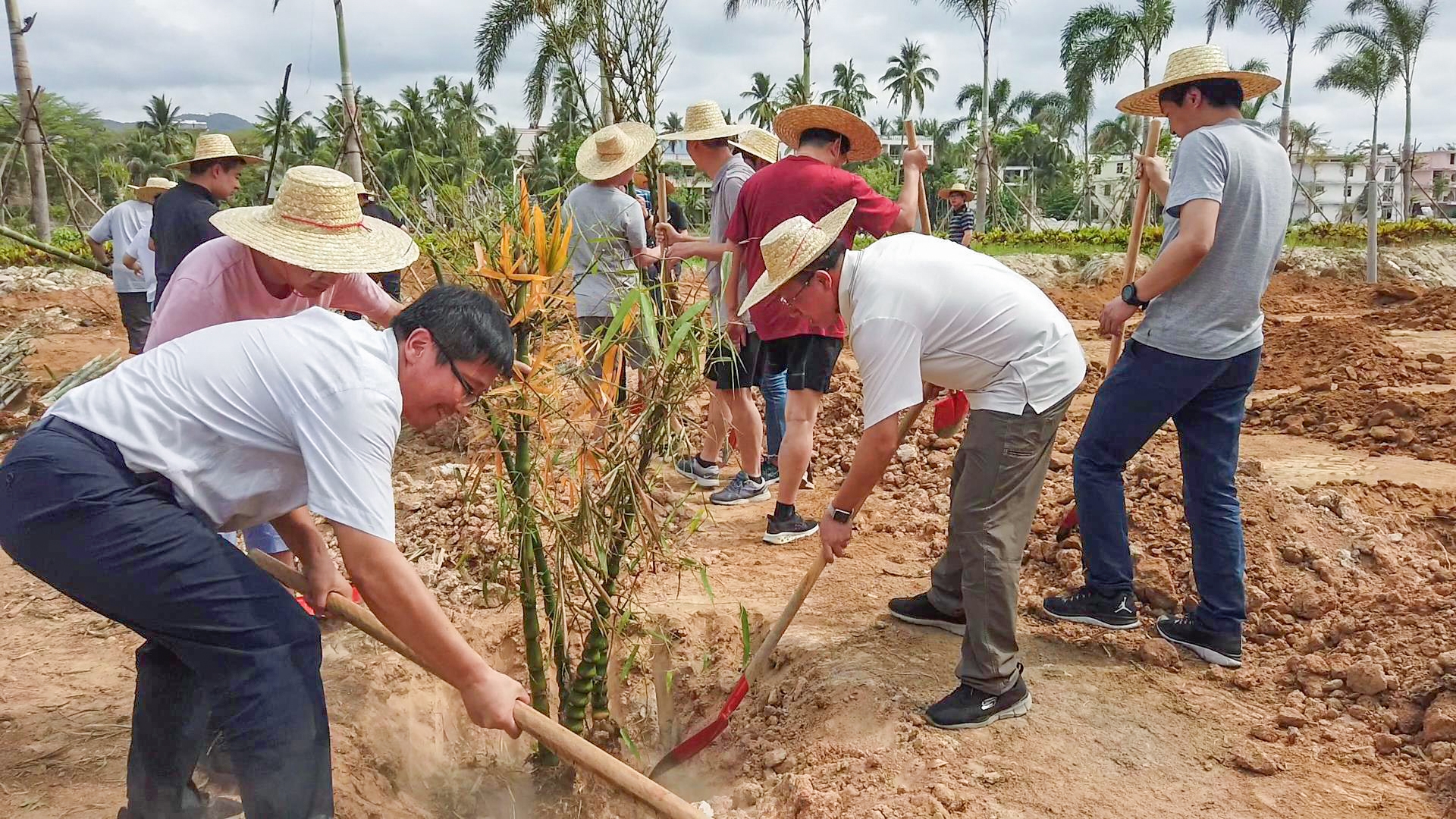 热火朝天的植竹活动场面