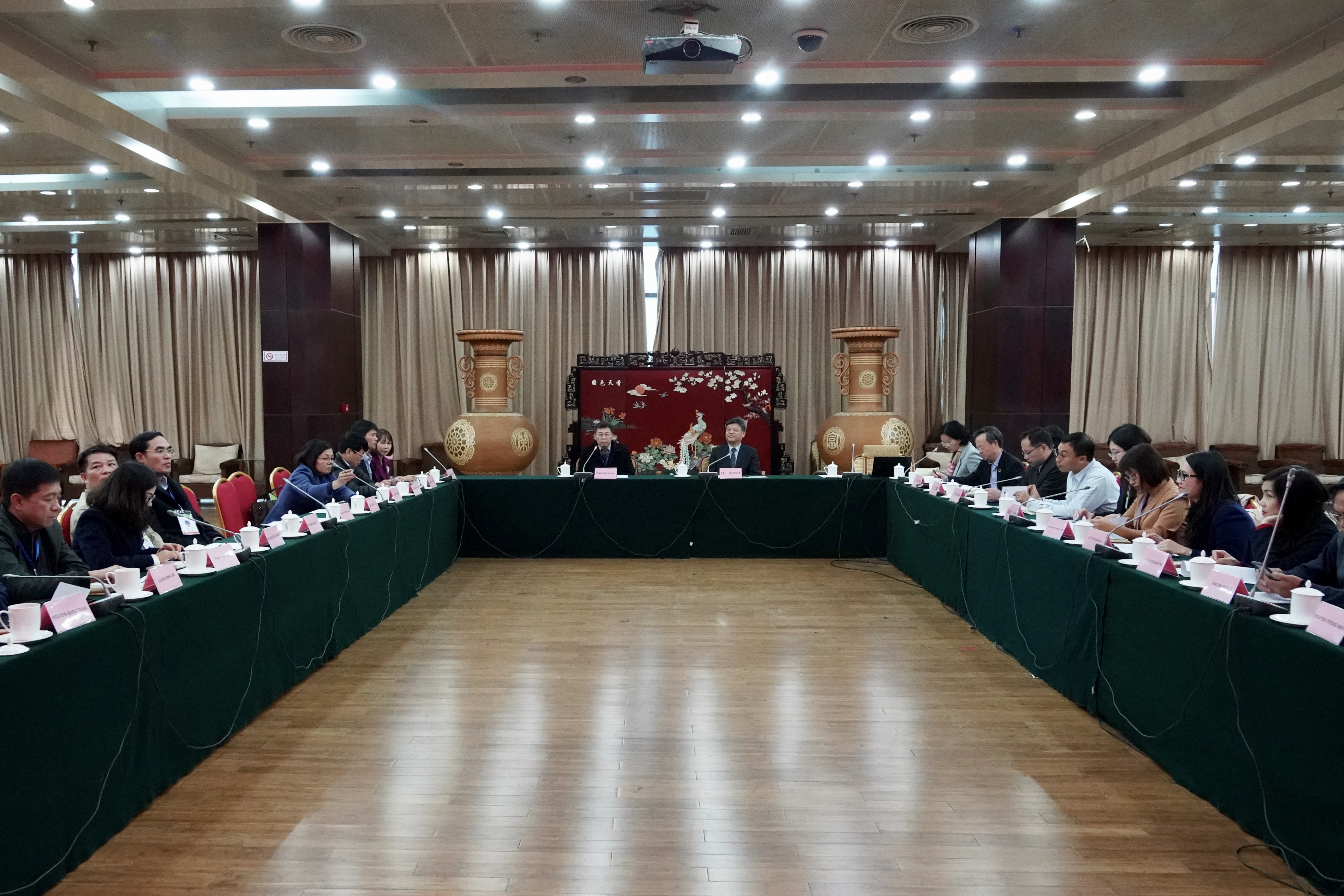 2019年10月29日,越南林业科学研究院非木材林产品研究中心主任潘文胜率越南林业代表团一行20人访问了国际竹藤中心,中心费本华常务副主任率相关处(所)负责人和专家等与代表团举行了会谈。