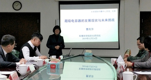 2019年12月24日上午,国际竹藤中心竹藤生物质新材料研究所(以下简称材料所)组织召开了“超级电容器”专题学术报告会,会议邀请了中国人民解放军军事科学院防化研究院曹高萍研究员、浙江阿佩克斯科技有限公司陈再华高级工程师和天津工业大学时志强教授分别就超级电容器方面的产业发展、电极材料及电解液研究现状进行了深入交流。会议由材料所副所长刘杏娥研究员主持,中心常务副主任费本华研究员,科技处处长覃道春研究员,绿色经济研究所副所长刘志佳研究员,国际合作与交流处副处长李志强研究员,北京化工大学陈晓红教授,北京林业大学姚春丽教授及材料所部分科研人员和研究生共计40余人聆听了报告。