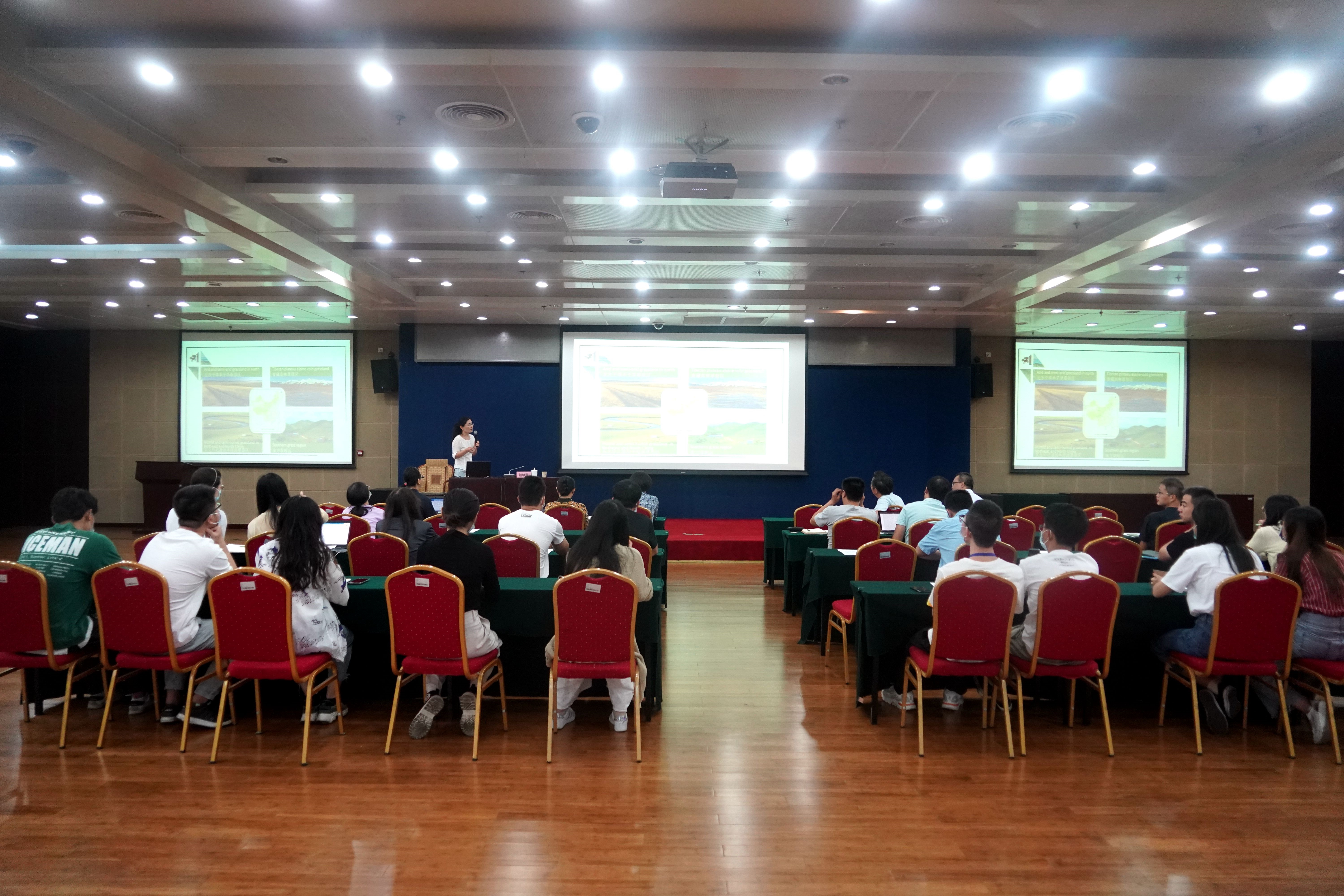 包晓影结合自身多年的草原研究成果和管理经验,围绕大家关注的热点焦点问题,全面、系统介绍了草原的概况、草原事业发展的历史、工作职责和草原自然公园等草原领域相关专业知识。通过专题讲座英文与中文授课相结合的方式,让大家对中国草原的面积、分区、类型,草原管理机构发展演变的历程及其职责职能,国家草原自然公园试点情况等有了更为全面的了解,对被誉为“地球皮肤”的草原的功能和地位有了更加深入的认识。会上大家还观看了《中国草原》纪录片。
