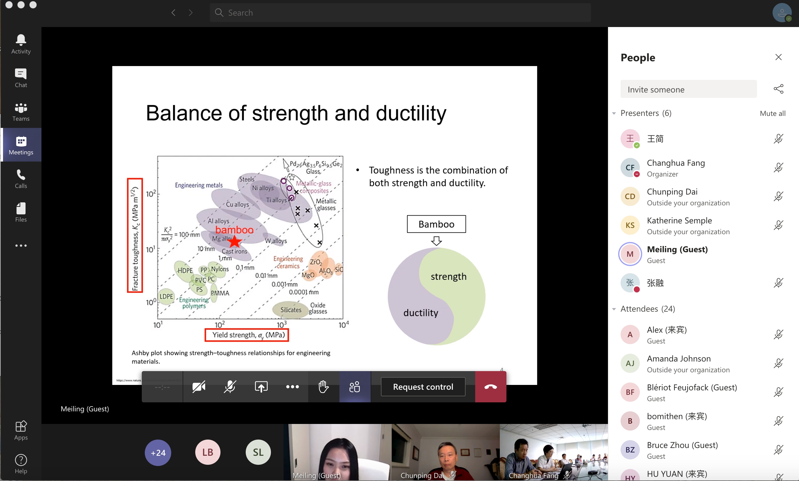 2020年9月15日上午,由我中心与加拿大不列颠哥伦比亚大学(以下简称“UBC”)林学院共同组建的中加竹藤科学与技术联合实验室召开了首届学术交流会。会议邀请了我中心博士后刘嵘,UBC林学院助理研究员Kate Semple、博士后陈美玲及中国林科院木材工业研究所博士生黎静围绕竹藤材料学研究进行了深入交流和探讨。本次会议在线上、线下同时举行,由中加联合实验室中方主任方长华研究员主持,中心常务副主任费本华研究员、中加联合实验室加方主任戴春平教授、加拿大维多利亚大学土木工程学院助理教授Sardar Malek博士、基因所副所长高志民研究员、国际合作与交流处副处长张融副研究员等中加双方共40余名科研人员和研究生参加了此次学术交流。
