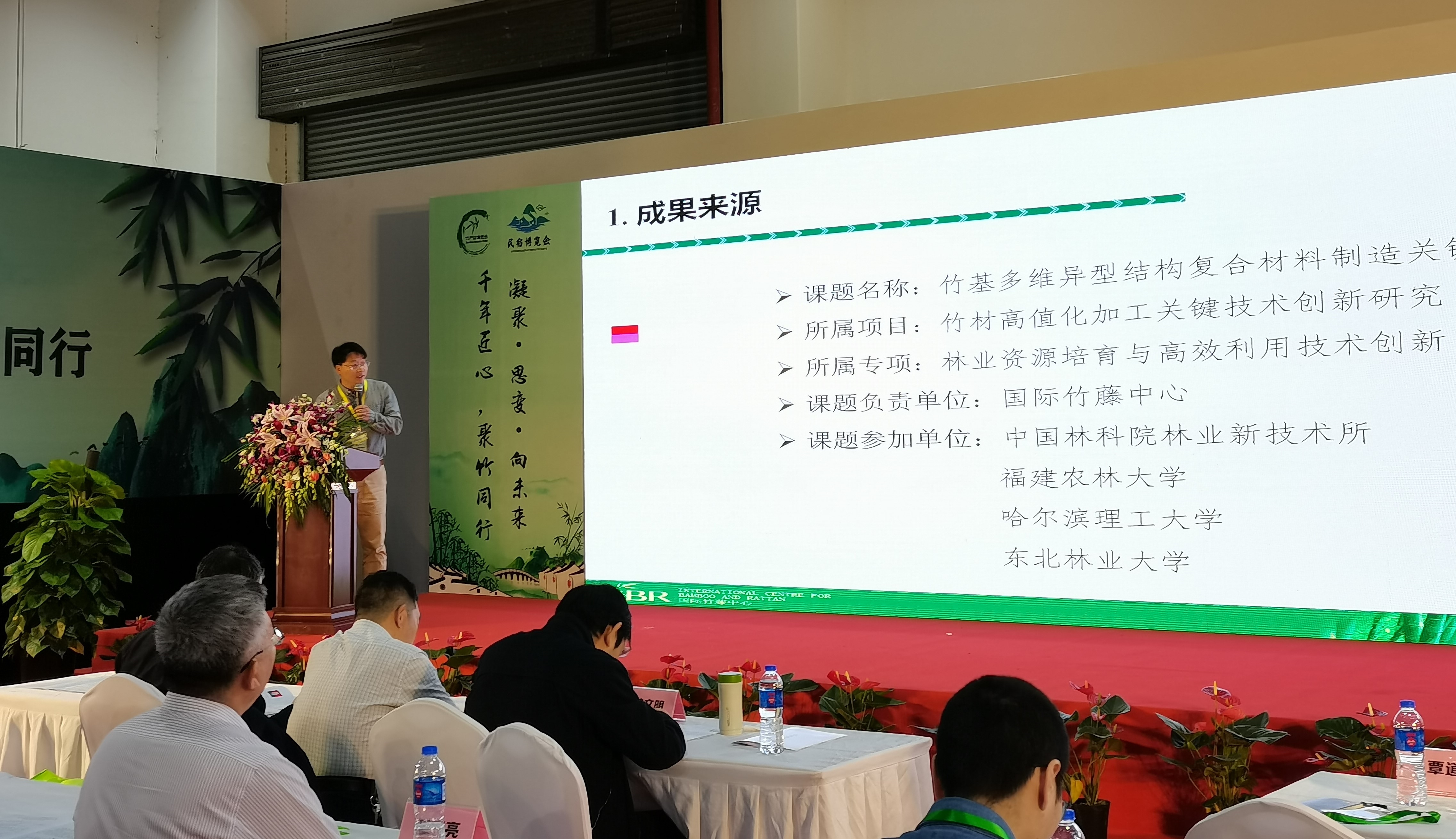 会上,“十三五”项目专家做了“金佛山方竹种苗繁育、低产林改造与高效培育技术”“竹缠绕复合管”等11项科技成果的专题报告,与会代表对项目成果表示了极大的兴趣。