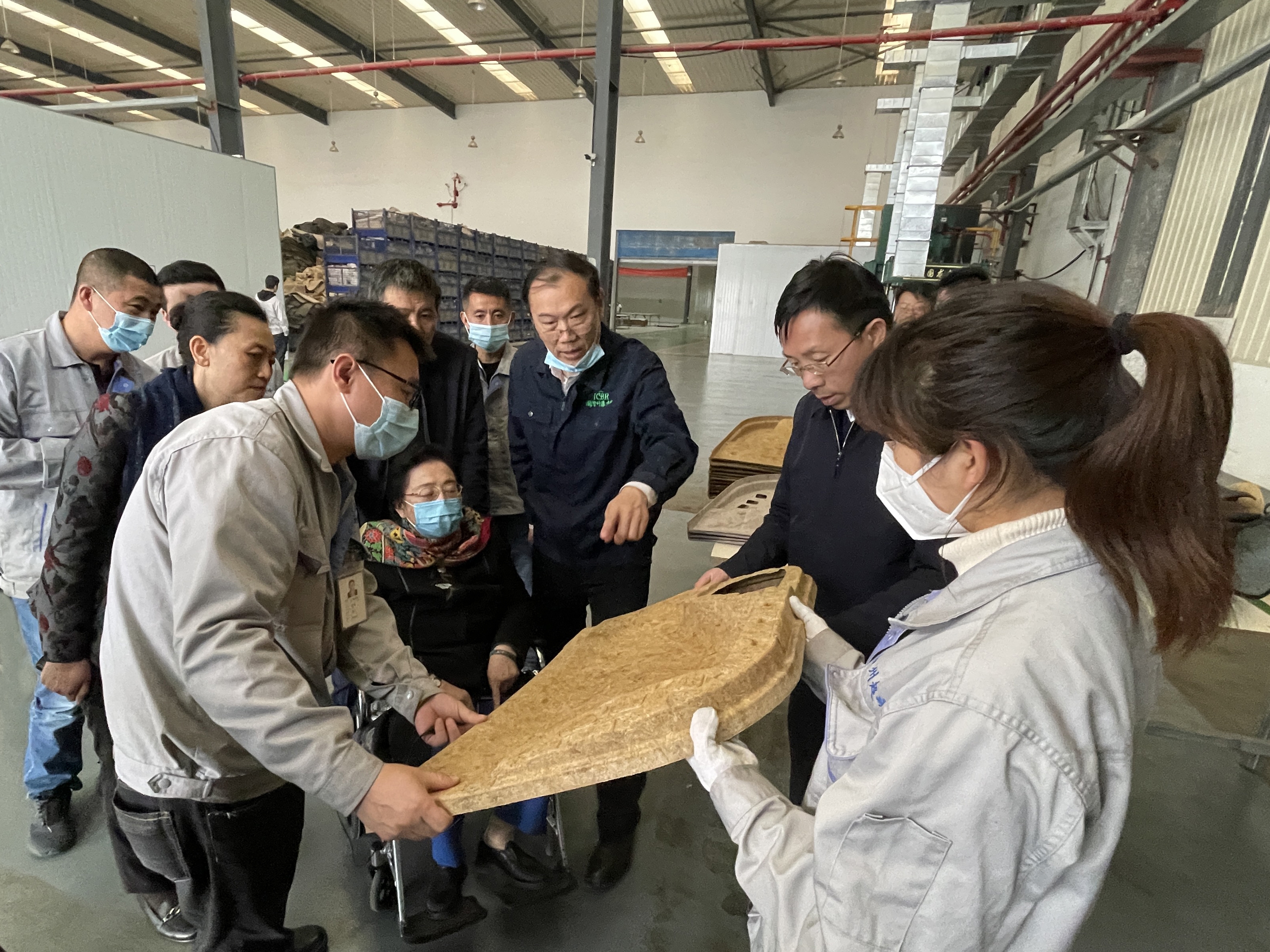 随后,江泽慧主任一行参观了从竹纤维梳理、成毡、模压到最终制品的生产加工车间,仔细了解了竹纤维汽车内衬件生产流程。